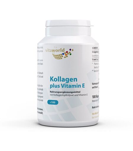 Nahrungsergänzungsmittel sind kein Ersatz für eine ausgewogene und abwechslungsreiche Ernährung und eine gesunde Lebensweise. Kollagen + Vitamin EZutaten: Kollagenhydrolysat (Rind), Kapselhülle vegetarisch: Hydroxypropylmethylcellulose ,Vitamin E, Trennmittel: Magnesiumsalze von SpeisefettsäurenNährwerte:Nährstoffepro Kapsel% RDAGelatinehydrolysat500 mg-Alpha-Tocopherol-Vitamin E24 mg200 %*% RDA gemäß EU-Richtlinie über empfohlene TagesverzehrmengeVerzehrempfehlung: Täglich eine Kapseln mit ausreichend Flüssigkeit verzehren. Am besten zu einer Mahlzeit.Hinweis:Die angegebene empfohlene Tagesmenge darf nicht überschritten werden.Aufbewahrung: Kühl (6-25 °C) und lichtgeschützt lagern. Außerhalb der Reichweite von kleinen Kindern aufbewahren.Nettofüllmenge:100 Kapseln = 66,7 gHersteller:Vita-World GmbHRudolf Dietz Straße 3065232 Taunusstein ...