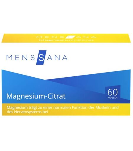 Nahrungsergänzungsmittel stellen keinen Ersatz für eine abwechslungsreiche und ausgewogene Ernährung sowie für eine gesunde Lebensweise dar.Magnesium-Citrat MensSana dient der bedarfsgerechten Versorgung mit dem lebenswichtigen Mineralstoff Magnesium. Er erfüllt im Körper vielfältige wichtige Aufgaben. Hierzu zählen zum Beispiel die Aufrechterhaltung eines normalen Energiestoffwechsels. Außerdem unterstützt Magnesium die normale Muskelfunktion oder auch die normale Funktion des Nervensystems. Zusätzlich verringert die optimale Magnesium-Versorgung Müdigkeit und Ermüdung. Die organische Magnesiumcitrat-Verbindung ist hierbei besonders effektiv und wird vom menschlichen Körper bestmöglich aufgenommen. Durch die Abfüllung in eine pflanzliche Zellulosekapsel ist Magnesium-Citrat MensSana auch für eine vegane Ernährung geeignet.Magnesium-Citrat MensSana ist ein Produkt der Kölner Liste. Dabei handelt es sich um ein Gütesiegel zur Auflistung von Nahrungsergänzungsmitteln mit minimiertem Dopingrisiko (auf ausgewählte Stimulanzien und anabole Steroide getestet) durch transparente und regelmäßig kontrollierte Waren und Herstellerprozesse.Zutaten: Tri-Magnesiumdicitrat, Hypromellose (Kapselhülle), Trennmittel Magnesiumsalze der Speisefettsäuren (pflanzlich) Nährwerte: Durchschnittliche Nährwerte: pro Tagesdosis NRV* Magnesium 375 mg 100 Verzehrempfehlung:Erwachsene und Jugendliche verzehren 3 Kapseln täglich vor dem Essen oder zur Nacht mit reichlich Wasser.Die Kapselhüllen aus pflanzlicher Zellulose enthalten keine wertgebenden Inhaltsstoffe und können nach Bedarf geöffnet werden. Es besteht die Möglichkeit,das enthaltene Pulver dem Essen beizufügen. Das Pulver löst sich nicht in Getränken.Hinweis:Die angegebene empfohlene Tagesmenge darf nicht überschritten werden.Aufbewahrung: Kühl (6-25 °C) und lichtgeschützt lagern. Außerhalb der Reichweite von kleinen Kindern aufbewahren.Nettofüllmenge: 60 Kapseln = 57 gHersteller:MensSana AGAm Bahnhof 174670 Forchtenberg ...