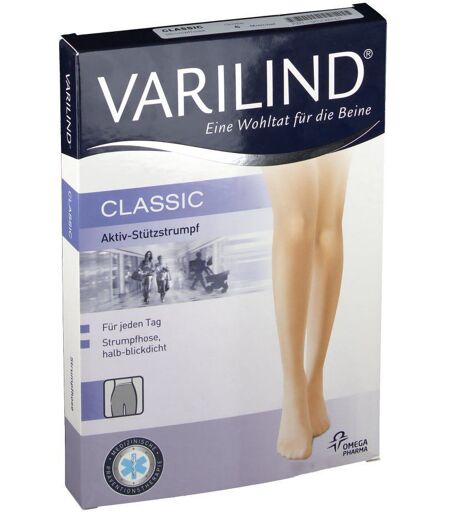 Unbenanntes Dokument VARILIND Classic 70 DEN Gr. 6 muschel Der beliebte Klassiker für jeden Tag. Entlastet Beine und Venen Wirkt dem Anschwellen der Beine Entgegen Beugt schweren und müden Beinen vor Wirkweise: Durch einen genau definierten abnehmenden Druckverlauf wird die Blutzirkulation in den Beinen unterstützt. Die Venen werden dadurch entlastet, die Beine belebt. Material: Hochwertige, atmungsaktive und elastische Materialien sorgen für einen angenehmen Tragekomfort. Das feine Maschenbild und die halb-blickdichte Optik verleihen dem Strumpf eine ganz besondere Eleganz. Besonderheit: Besonders strapazierfähig durch verstärkte Spitze, Sohle und Ferse. Angenehm weiches Komfortbündchen für den perfekten Halt, schnürt nicht ein. Nettofüllmenge: 1 Stück Herstellerdaten: Paracelsia Pharma GmbH ...