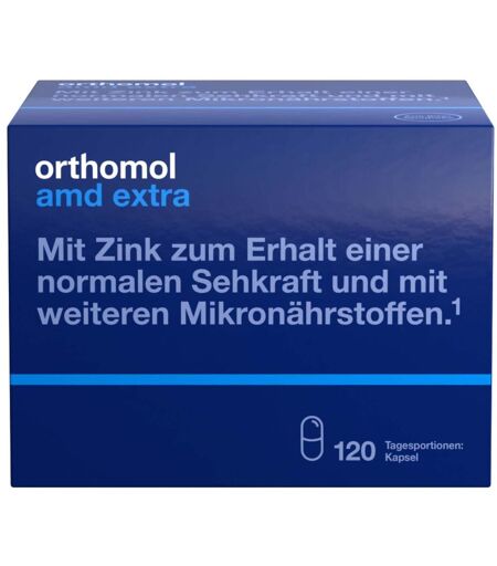 Nahrungsergänzungsmittel sind kein Ersatz für eine ausgewogene und abwechslungsreiche Ernährung und eine gesunde Lebensweise. Zum Erhalt einer normalen Sehkraft Jahrzehntelang haben wir unser uneingeschränktes Sehvermögen für selbstverständlich gehalten. Doch mit zunehmendem Alter kann die Sehkraft schwinden. Wir stellen allmählich fest, dass unsere Augenfunktion nachlässt und uns in unserem Handeln einschränken kann. In diesem Zusammenhang können besonders Vitamine mit antioxidativen Eigenschaften, der Mineralstoff Zink sowie die sekundären Pflanzenstoffe Lutein und Zeaxanthin das Auge gezielt nutritiv unterstützen. Mit Zink zum Erhalt einer normalen Sehkraft und mit weiteren Mikronährstoffen Orthomol AMD extra ist ein Nahrungsergänzungsmittel mit einer ausgewogenen Kombination aus gezielt dosierten Mikronährstoffen zum Erhalt der normalen Sehkraft. Es enthält Zink, Vitamin C, Vitamin E, Kupfer, Lutein und Zeaxanthin. Mehr von Orthomol entdecken Zutaten: L-Ascorbinsäure, Überzugmittel Hydroxypropylmethylcellulose, Maisstärke, DL-alpha-Tocopherylacetat, Füllstoff mikrokristalline Cellulose, Trennmittel Calciumsalze der Speisefettsäuren, Zinkoxid, Lutein-haltiger Tagetes erecta-Extrakt, Kupfersulfat, färbendes Konzentrat aus Spirulina (Arthrospira platensis) und Apfel (Malus sp.), Zeaxanthin (aus Tagetes erecta). Zusammensetzung: 1 Tagesportion zu je 1 Kapsel (0,5 g) Zusammensetzung pro Kapsel (0,5g) % RM** Vitamine Vitamin E 67 mg alpha-TE* 558 Vitamin C 125 mg 156 Mineralstoffe Zink 6,3 mg 63 Kupfer 0,5 mg 50 sonstige Stoffe Lutein 2,5 mg *** Zeaxanthin 500 μg *** * alpha-TE = Alpha-Tocopheroläquivalente ** RM = Referenzmenge nach EU-Verordnung 1169/2011 *** keine Referenzmenge vorhanden Verzehrempfehlung: Täglich eine Kapsel vorzugsweise mit viel Flüssigkeit zu oder nach einer Mahlzeit einnehmen. Bei den Kapseln handelt es sich um Steckkapseln, die sich bei Bedarf öffnen lassen, um den Inhalt in kalte und lauwarme Speisen oder Getränke zu mischen. Mikronährstoffe werden täglich vom Körper gebraucht, eine regelmäßige Verwendung über einen längeren Zeitraum ist daher empfehlenswert. Hinweis: Die angegebene empfohlene Tagesmenge darf nicht überschritten werden. Nahrungsergänzungsmittel sollten nicht als Ersatz für eine abwechslungsreiche und ausgewogene Ernährung dienen. Achten Sie auf eine gesunde Lebensweise. Aufbewahrung: Bewahren Sie Orthomol AMD extra bevorzugt kühl und trocken auf. Außerhalb der Reichweite von kleinen Kindern aufbewahren. Nettofüllmenge: 120 Kapseln (0,5 g) = 60 g. Herstellerdaten: Orthomol Pharmazeutische Vertriebs GmbH Herzogstraße 30 40764 Langenfeld ...
