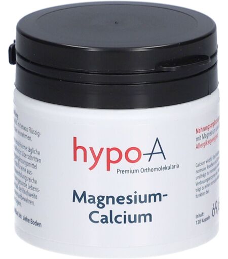 Nahrungsergänzungsmittel sind kein Ersatz für eine ausgewogene und abwechslungsreiche Ernährung und eine gesunde Lebensweise.hypo-A Magnesium-CalciumZutaten: Magnesiumcarbonat 50 %, Calciumcarbonat 33 %, Kapsel: Hydroxypropylmetylcellulose Durchschnittlicher Gehaltpro 4 Kapselnpro 100 g% des empfohlenen Tagesbedarfs*Energie23,4 kJ/ 5,6 kcal1008,6 kJ/ 241,4 kcal-Fett0 g0 g-davon gesättigte Fettsäuren0 g0 g-Kohlenhydrate1,2 g151,7 g-davon Zucker0 g0 g-Ballaststoffe<0,5 g15,5 g-Eiweiß0 g0 g-Salz<0,001 g0,04 g-Magnesium300 mg12931 mg80Calcium300 mg12931 mg37,5* Referenzmenge nach EU-Richtlinie VO 1169/2011 EUVerzehrempfehlung:2 x 2 Kapseln täglich mit etwas Flüssigkeit einnehmenHinweis:Die angegebene empfohlene Tagesmenge darf nicht überschritten werden.Aufbewahrung: Kühl (6-25 °C) und lichtgeschützt lagern. Außerhalb der Reichweite von kleinen Kindern aufbewahren.Nettofüllmenge: 120 Kapseln à 580 mg = 69,6 gHerstellerdaten: hypo-A GmbHKücknitzer Hauptstr. 5323569 Lübeck ...