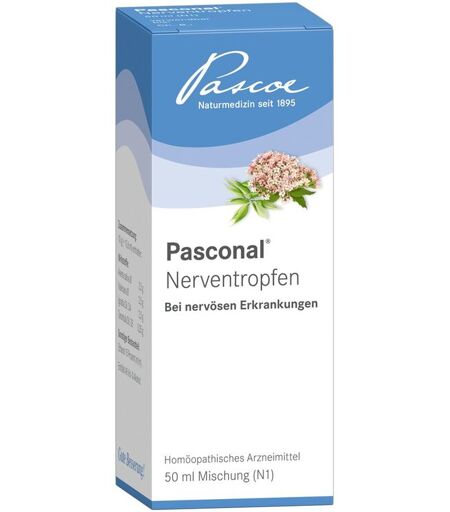 Was ist Pasconal® Nerventropfen und wofür wird es angewendet? Pasconal® Nerventropfen ist ein homöopathisches Arzneimittel bei nervösen Erkrankungen. Die Anwendungsgebiete leiten sich von den homöopathischen Arzneimittelbildern ab. Dazu gehören: Schlafstörungen bei Nervosität. Hinweis: Bei anhaltenden oder unklaren Beschwerden sollte ein Arzt aufgesucht werden. Wie ist Pasconal® Nerventropfen anzuwenden? Nehmen Sie das Arzneimittel immer genau nach der Anweisung in der Packungsbeilage ein. Bitte fragen Sie bei Ihrem Verordner oder Apotheker nach, wenn Sie sich nicht ganz sicher sind. Soweit nicht anders verordnet: Erwachsene und Jugendliche ab 12 Jahren: Bei akuten Zuständen alle halbe bis ganze Stunde, höchstens 12-mal täglich 5-10 Tropfen einnehmen. Bei chronischen Verlaufsformen 1 bis 3-mal täglich 5–10 Tropfen einnehmen. Kinder vom 1. bis 6. Lebensjahr erhalten nicht mehr als die Hälfte (entspr. je 3–5 Tropfen). Kinder zwischen dem 6. und 12. Lebensjahr erhalten nicht mehr als zwei Drittel der Erwachsenendosis (entspr. je 4–8 Tropfen). Kinder und empfindliche Personen sollten das Arzneimittel mit etwas Wasser verdünnt einnehmen. Dauer der Anwendung: Auch homöopathische Arzneimittel sollten ohne medizinischen Rat nicht über längere Zeit eingenommen werden. WasPasconal® Nerventropfen enthält: 10 g (= 10,6 ml) enthalten: Avena sativa Ø 2,5 g, Valeriana Ø 2,5 g, Ignatia Dil. D4 2,5 g, Tarantula Dil. D5 0,25 g. Die sonstigen Bestandteile sind: Ethanol 15 % (m/m). 1 g (= 1,06 ml) Pasconal® Nerventropfen entspricht 46 Tropfen. Nettofüllmenge: 50 ml ...