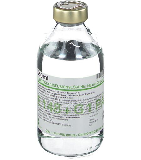 Anwendungsgebiete zum perioperativen plasmaisotonen Flüssigkeits- und Elektrolytersatz bei Neugeborenen, Säuglingen und Kleinkindern mit partieller Deckung des Kohlenhydratbedarfs zum kurzfristigen intravasalen Volumenersatz zur Behandlung einer isotonen Dehydratation zur Verwendung als Trägerlösung für kompatible Elektrolytkonzentrate und Arzneimittel Dosierung, Art und Dauer der AnwendungZur perioperativen intravenösen Infusionstherapie erfolgt die Dosierung entsprechend dem Flüssigkeits-, Elektrolyt- und Glucosebedarf: in der ersten Stunde z. B. 10 – 20 ml/kg/h, dann zur Steuerung der Infusionsgeschwindigkeit nach Basis- und Korrekturbedarf unter Kontrolle von relevanten Kreislauf- und Laborparametern. Für den Flüssigkeitsbedarf im Säuglingsund Kindesalter gelten folgende Richtwerte: 1. Lebensjahr: 100 – 140ml/kg Körpermasse und Tag2. Lebensjahr: 80 – 120 ml/kg Körpermasse und Tag3. – 5. Lebensjahr: 80 – 100 ml/kg Körpermasse und Tag6. – 10. Lebensjahr: 60 – 80ml/kg Körpermasse und Tag10. – 14. Lebensjahr: 50 – 70ml/kg Körpermasse und Tag Bei der Therapie der isotonen Dehydratation im Säuglings- und Kindesalter sind Infusionsgeschwindigkeit und Tagesdosis der Art und Schwere der Störung im Elektrolytund Wassergehalt entsprechend individuell und unter Kontrolle der relevanten Kreislaufund Laborparameter festzulegen. Wird Elektrolyt-Infusionslösung 148 mit Glucose 1 PÄD zusammen mit anderen Infusionslösungen angewendet, sind bei der Dosierung die für das jeweilige Lebensalter geltenden Richtlinien für die Gesamtflüssigkeitszufuhr zu beachten.Insbesondere bei unreifen und untergewichtigen Neugeborenen, jedoch auch bei allen sonstigen therapeutischen Ausnahmesituationen muss der jeweilige Bedarf an Wasser, Elektrolyten und Kohlenhydraten individuell ermittelt und dementsprechend substituiert werden. Je jünger, unreifer bzw. untergewichtiger der Patient, desto exakter muss eine Bilanzierung erfolgen. Art der AnwendungZur intravenösen Anwendung.Dauer der AnwendungDie Anwendungsdauer richtet sich nach dem Flüssigkeits- und Elektrolytbedarf. Wirkstoffe:1000 ml Infusionslösung enthalten:Natriumchlorid 6,429 gKaliumchlorid 0,298 gCalciumchlorid-Dihydrat 0,147 gMagnesiumchlorid-Hexahydrat 0,203 gNatriumacetat-Trihydrat 4,082 gGlucose-Monohydrat (Ph. Eur.) 11,0 g (ommol/l: Na+ 140; K+ 4; Ca2+ 1; Mg2+ 1; Cl– 118; Acetat-Ionen 30; Glucose 55,5)Steril und pyrogenfreipH: 5,0–7,0Theoretische Osmolarität: 351 mOsmol/lTitrationsazidität: bis pH 7,4 ≤5mmol/lEnergiegehalt: 168 kJ/l (40 kcal/l)Kohlenhydratgehalt: 10 g/l ...