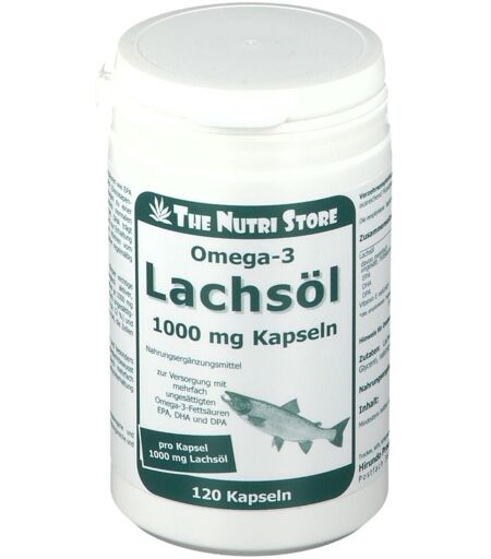 Nahrungsergänzungsmittel sind kein Ersatz für eine ausgewogene und abwechslungsreiche Ernährung und eine gesunde Lebensweise. Zutaten:Lachsöl, Gelatine, Glycerin, natürliches Vitamin E Zusammensetzungpro Kapsel pro Tagesdosis in %*pro 100 gLachsöl 1000,0 mg3000,0 mg **74,1 g davon mehrfach ungesätt. Fettsäuren 300,0 mg900,0 mg **22,2 gEPAca. 180,0 mg540,0 mg**13,3 g DHA ca. 120,0 mg360,0 mg **8,9 g DPA ca. 25,0 mg75,0 mg**1,8 g Vitamin E10,0 mg30,0 mg300%740,7 mg *Empf. Tagesbedarf nach RDA gem. EU-Richtlinie über die Nährwertkennzeichnung.**noch keine EU-Empfehlung für den Tagesbedarf vorhandenHinweis für Diabetiker:1 Kapsel entspricht 0,004 BE.Verzehrsempfehlung:Verzehren Sie 3 mal täglich 1 Kapsel unzerkaut mit ausreichend Flüssigkeit vor den Mahlzeiten.Hinweis:Die angegebene empfohlene Tagesmenge darf nicht überschritten werden.Aufbewahrung:Kühl (6-25 °C) und lichtgeschützt lagern. Außerhalb der Reichweite von kleinen Kindern aufbewahren.Nettofüllmenge:120 Kapseln = 162 gHerstellerdaten: Hirundo Products Vertriebsanstalt MaurenPostfach 367FL-9493 MaurenFürstentum Liechtenstein ...