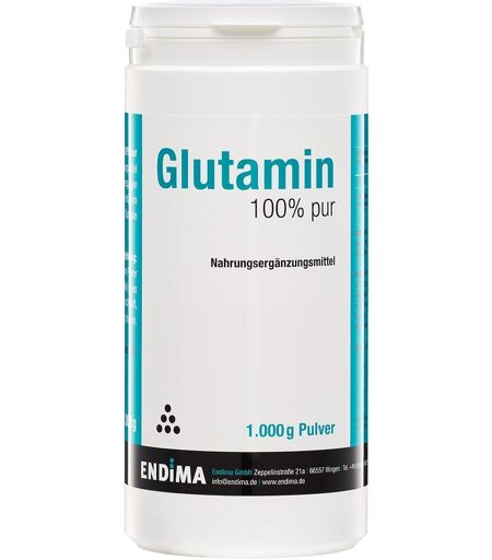 Nahrungsergänzungsmittel sind kein Ersatz für eine ausgewogene und abwechslungsreiche Ernährung und eine gesunde Lebensweise.Endima® Glutamin 100 % Pur Nahrungsergänzungsmittel bei intensiven Muskelanstrengungen und hartem Training mit erhöhtem Bedarf an Glutamin.Zutaten: L-Glutamin 100% Zusammensetzung pro empfohlener tägl. Verzehrsmenge (7,5 g Pulver) NRV* L-Glutamin 7,5 g ** * % NRV = Nährstoffbezugswerte gemäß Lebensmittelinformationsverordnung ** kein NRV-Wert vorliegendVerzehrsempfehlung: Täglich 7,5 Gramm Pulver (1 gestrichener Messlöffel) in ein Getränk, z.B. Wasser oder Fruchtsaft, einrühren und zügig trinken. Messlöffel liegt im Doseninneren bei.Hinweis:Die angegeben empfohlene tägliche Verzehrsmenge darf nicht überschritten werden.Aufbewahrung: Dose immer gut verschlossen, kühl, trocken und außerhalb der Reichweite von kleinen Kindern aufbewahren.Nettofüllmenge: 1.000 g PulverHerstellerdaten: Endima GmbH Zeppelinstraße 21 a 66557 Illingen ...