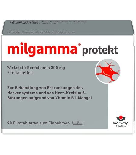 milgamma® protekt: Ihre Wahl bei Nervenschäden infolge eines Vitamin-B1-Mangels Kribbelnde, brennende oder schmerzende Füße können durch Nervenschäden, sogenannte Neuropathien, verursacht werden. Eine mögliche Ursache für diese Neuropathien ist ein Vitamin-B1-Mangel. Viele Betroffene wissen nicht, dass ein Mangel an Vitamin B1 diese Nervenschäden auslösen oder verstärken können. Wenn der Vitamin-B1-Mangel ausgeglichen wird, können die Beschwerden in den Füßen gelindert werden. Vitamin B1 ist ein essenzielles Vitamin, das der Körper nicht selbst produzieren kann. Es gehört zu den wasserlöslichen Vitaminen, ist am Energiestoffwechsel beteiligt und kann nur begrenzt im Körper gespeichert werden. Daher muss es regelmäßig und in ausreichender Menge über die Nahrung aufgenommen werden. Wenn dies nicht geschieht oder der Darm nicht in der Lage ist, genügend Vitamin B1 aufzunehmen und bereitzustellen, kann ein Mangel entstehen. Besonders Diabetes-Patienten sind gefährdet, da sie ein erhöhtes Risiko für einen Vitamin-B1-Mangel haben.1 Etwa 30% der Diabetiker in Deutschland entwickeln eine Neuropathie.2 Bei Menschen mit Diabetes wird Vitamin B1 verstärkt über die Nieren ausgeschieden, was zu einer deutlich geringeren Konzentration im Blut führt als bei gesunden Menschen.1 Neuropathie-Symptome Folgende Symptome können auf eine Neuropathie bzw. Polyneuropathie infolge eines Vitamin-B1-Mangels, besonders bei z. B. Menschen mit Typ-2-Diabetes, hindeuten: Berührungen, Temperaturunterschiede oder Schmerzreize sind schlechter wahrnehmbar Missempfindungen wie Kribbeln, Taubheitsgefühl, pelziges Gefühl, Brennen bis hin zu starken Schmerzen – vor allem nachts und im Ruhezustand Muskelschwäche in den Beinen Unsicherer Gang Vitamin-B1-Mangel durch Mangel- oder Fehlernährung Ein Mangel an Vitamin B1 kann durch eine sehr einseitige Ernährung, wie den Verzehr von überwiegend Weißmehlprodukten, sowie durch hohen Konsum von Kaffee und schwarzem Tee, rohem Fisch oder übermäßigen und regelmäßigen Alkoholkonsum begünstigt werden. Chronische Magen-Darm-Erkrankungen Langfristige Entzündungen und andere Erkrankungen des Magen-Darm-Trakts können zu einem Mangel an Vitamin B1 führen. Milgamma® protekt: Ihre Wahl bei Nervenschäden infolge eines Vitamin-B1-Mangels Da der erhöhte Bedarf an Vitamin B1 oft nicht allein durch die normale Ernährung gedeckt werden kann, ist es besonders wichtig, den Körper ausreichend mit Vitamin B1 zu versorgen. Der in milgamma® protekt enthaltene Wirkstoff Benfotiamin behebt den Vitamin-B1-Mangel als eine Ursache von Nervenschädigungen und kann so bei regelmäßiger Einnahme die Begleitsymptome einer auf einem Vitamin-B1-Mangel beruhenden Neuropathie wie Kribbeln, Brennen, Taubheitsgefühle und Schmerzen in den Füßen lindern. Das Besondere in der Tablette: Benfotiamin Das in milgamma® protekt enthaltene Benfotiamin ist die fettlösliche Vorstufe von Vitamin B1. Benfotiamin wird 5-mal besser vom Körper aufgenommen als einfaches“ Vitamin B1... ...