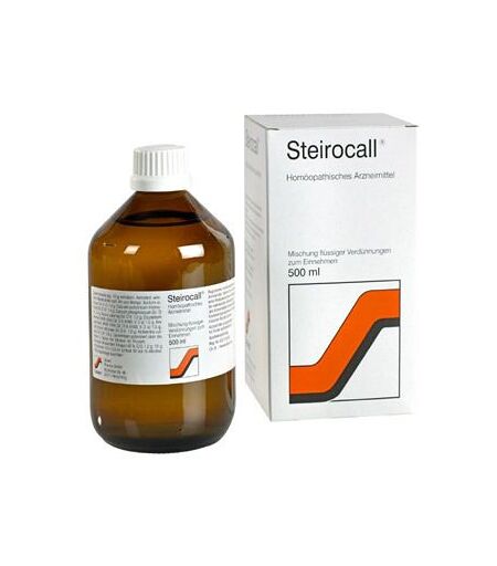 Zusammensetzung: 10 g enthalten - Arzneilich wirksame Bestandteile nach Art und Menge: Acidum silicicum (Kieselsäure) Dil. D 12 1,4 g Alchemilla vulgaris (Frauenmantel) Dil. D 6 0,6 g Acorus calamus (Kalmus) Dil. D 6 1,0 g Calcium carbonicum Hahnemanni (Austernschalenkalk) Dil. D 12 1,4 g Calcium phosphoricum (Calciumhydrogenphosphat) Dil. D 12 1,4 g Equisetum arvense (Ackerschachtelhalm) (HAB 1934) Dil. D 6 (HAB,V. 2a) 1,0 g Ilex aquifolium (Stechpalme) (HAB 1934) Dil. D 6 (HAB, V. 2a) 1,0 g Symphytum officinale (Beinwell) Dil. D 6 1,0 gGemeinsam potenziert über die letzten zwei Stufen mit Ethanol 43%.Sonstiger Bestandteil: Ethanol 43 % G/G 1,2g Anwendungsgebiete:Registriertes homöopathisches Arzneimittel, daher ohne Angabe einer therapeutischen Indikation. Bei während der Anwendung des Arzneimittels fortdauernden Krankheitssymptomen ist medizinischer Rat einzuholen. Gegenanzeigen:Nicht anwenden bei Alkoholkranken. Wegen des Alkoholgehaltes soll Steirocall bei Leberkranken, Epileptikern, Hirnkranken oder Hirngeschädigten nur nach Rücksprache mit dem Arzt angewendet werden. Da keine ausreichend dokumentierten Erfahrungen in der Schwangerschaft und Stillzeit vorliegen und aufgrund des Alkoholgehaltes sollte Steirocall nur nach Rücksprache mit dem Arzt angewendet werden. Zur Anwendung dieses Arzneimittels bei Kindern liegen keine ausreichend dokumentierten Erfahrungen vor. Es soll deshalb bei Kindern unter 12 Jahren, auch wegen des Alkoholgehaltes, nicht angewendet werden.Vorsichtsmaßnahmen für die Anwendung und Warnhinweise:Enthält 50 Vol.-% Alkohol.Ein gesundheitliches Risiko besteht u.a. bei Leberkranken, Alkoholkranken, Epileptikern, Hirnkranken oder -geschädigten, Schwangeren und Kindern. Die Wirkung anderer Arzneimittel kann beeinträchtigt oder verstärkt werden.Wechselwirkungen:Keine bekannt. Algemeiner Hinweis: Die Wirkung eines homöopathischen Arzneimittels kann durch allgemein schädigende Faktoren in der Lebensweise und durch Reiz- und Genussmittel ungünstig beeinfluss werden. Die gleichzeitige Einnahme anderer Arzneimittel sollte ebenfalls berücksichtigt werden.Dosierungsanleitung, Art und Dauer der Anwendung:Die Dosierung erfolgt im Rahmen der individuellen Therapie des Patienten. Aufgrund der langjährigen Erfahrungen mit der vorliegenden Kombination empfehlen wir für die therapeutische Anwendung eine Dosierung von 3 x täglich je 30 - 50 Tropfen, in der Selbstmedikation max. 120 Tropfen täglich. Mit Flüssigkeit verdünnt (z.B. 1/2 Glas Wasser) vor den Mahlzeiten einnehmen. Auch homöopathische Arzneimittel sollten ohne ärztlichen Rat nicht über längere Zeit eingenommen werden. Die Dauer der Behandlung mit Steirocall ist nicht beschränkt. Sie richtet sich nach Schwere, Art und Verlauf der Erkrankung und sollte mindestens mehrere Wochen betragen. Zur Vermeidung von Rezidiven kann eine kurmäßige Anwendung, z.B. 2 x jährlich über 2-3 Monate, sinnvoll sein.Nebenwirkungen:Keine bekannt. Hinweis: Bei der Einnahme eines homöopathischen... ...