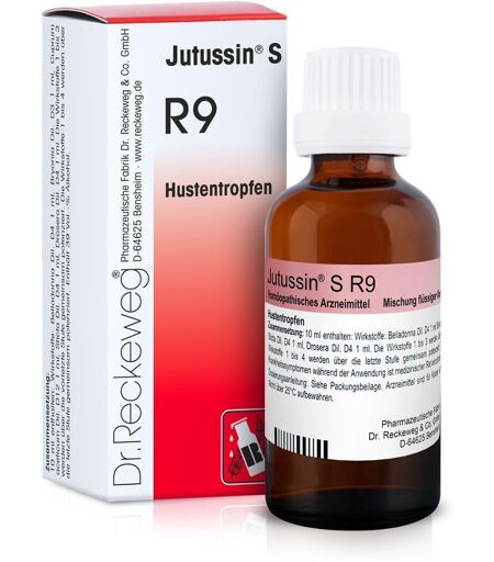 Was ist Jutussin® S R 9 und wofür wird es angewendet? Jutussin® S R 9 ist ein homöopathisches Arzneimittel bei Erkrankungen der Atemorgane. Anwendungsgebiete: Die Anwendungsgebiete leiten sich von den homöopathischen Arzneimittelbildern ab. Dazu gehört: Husten. Bei allen unklaren und plötzlich einsetzenden Beschwerden sollte ein Arzt aufgesucht werden, da es sich um Erkrankungen handeln kann, die einer ärztlichen Abklärung und Behandlung bedürfen.Wie ist Jutussin® S R 9 anzuwenden? Nehmen Sie Jutussin® S R 9 immer genau nach der Anweisung in der Packungsbeilage ein. Bitte fragen Sie bei Ihrem Arzt oder Apotheker nach, wenn Sie sich nicht ganz sicher sind. Soweit nicht anders verordnet: Bei akuten Zuständen alle halbe bis ganze Stunde, höchstens 6-mal täglich, je 5 Tropfen einnehmen. Eine über 1 Woche hinausgehende Anwendung sollte nur nach Rücksprache mit einem homöopathisch erfahrenen Therapeuten erfolgen. Bei chronischen Verlaufsformen 1- bis 3-mal täglich je 5 Tropfen einnehmen. Bei Besserung der Beschwerden ist die Häufigkeit der Anwendung zu reduzieren. Dauer der Anwendung: Auch homöopathische Arzneimittel sollten ohne ärztlichen Rat nicht über längere Zeit eingenommen werden.Wenn Sie weitere Fragen zur Anwendung des Arzneimittels haben, fragen Sie Ihren Arzt oder Apotheker. Das Arzneimittel Jutussin® S R 9 enthält:10 ml enthalten: Wirkstoffe: Belladonna Dil. D4 1 ml, Bryonia Dil. D3 1 ml, Cuprum aceticum Dil. D12 1 ml, Sticta Dil. D4 1 ml, Drosera Dil. D4 1 ml. Die Wirkstoffe 1 bis 3 werden über die vorletzte Stufe gemeinsam potenziert. Die Wirkstoffe 1 bis 4 werden über die letzte Stufe gemeinsam potenziert. Sonstiger Bestandteil: Ethanol 30% (m/m).1 ml entspricht 18 Tropfen. ...