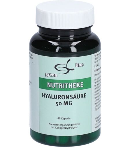 Nahrungsergänzungsmittel sind kein Ersatz für eine ausgewogene Ernährung und gesunde Lebensweise.green line Hyaluronsäure 50 mgNahrungsergänzungsmittel mit Protein-Baustein für Knorpel und Gelenke.Hyaluronsäure ist ein wichtiger Baustein für eine glatte Haut. Sie kann große Mengen Wasser ( bis zum 600-fachen) an sich binden und sorgt so für die optimale Versorgung der Zellen mit Feuchtigkeit.Hyaluronsäure wird häufig intravenös gepritzt. In Studien wurde allerdings nachgewiesen, dass auch die orale Aufnahme als Hydrolysat in Kapselform ebenso vom Körper aufgenommen wird.Hyaluronsäure wird selbst vom Körper produziert und kommt hauptsächlich in der Haut und in den Gelenken vor. Die Eigenproduktion im Körper läßt aber leider im Alter nach, weshalb hier ein Zufuhr sinnvoll ist.Sie bildet eine Stütze für die Kollagenfasern und sorgt somit für eine glatte und straffe Haut. Wir setzen deshalb in unserem Produkt ein entsprechend gut aufnehmbares Kollagenhydrolysat ein.Besonders wichtig ist auch ihre Funktion in den Gelenken.Zutaten: Collagen-Hydrolysat (enthält Hyaluronsäure), Hydroxypropylmethylcellulose Zusammensetzung pro KapselHyaluronsäure100 mgVerzehrempfehlung: 2 Kapseln pro Tag. Hinweis: Die angegebene empfohlene Tagesmenge darf nicht überschritten werden. Aufbewahrung: Kühl (6-25 °C) und lichtgeschützt lagern. Außerhalb der Reichweite von kleinen Kindern aufbewahren. Nettofüllmenge:60 Kps = 27,7 g Herstellerdaten: 11A nutritheke GmbHHauptstraße 3a91341 Röttenbach ...