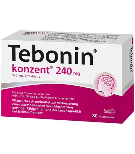 Tebonin® - Die Nr. 1* für Gedächtnis & Konzentration¹ Höchste Qualität – Erforscht, entwickelt & hergestellt in Deutschland Die kleinste Tablette mit der Tagesdosis von 240 mg Ginkgoextrakt im Markt Tebonin® konzent® 240 mg bei nachlassender Gedächtnisleistung Bei nachlassender Gedächtnisleistung frühzeitig handeln Heller Kopf trotz grauer Haare: Die mentale Beweglichkeit lässt mit den Jahren keineswegs zwangsläufig nach. Denn unser Gehirn lässt sich mit einem Muskel vergleichen: Übung und regelmäßige Unterstützung können die Leistungsfähigkeit langfristig erhalten. Ratsam dabei ist, frühzeitig aktiv zu werden. Hierfür gibt es wirksame Hilfe aus der Natur. Tebonin® – Die Nr. 1* für Gedächtnis & Konzentration** Tebonin® konzent® 240 mg mit dem standardisierten Ginkgo-Spezialextrakt EGb 761® kann dem altersbedingten geistigen Abbau entgegenwirken, wenn die Tabletten rechtzeitig eingenommen werden, das heißt sobald sich erste Anzeichen von Gedächtnisstörungen zeigen, und sofern Tebonin® konzent® 240 mg über längere Zeit angewendet wird. Die gut untersuchte Wirksamkeit des Präparats, welches in Deutschland erforscht, entwickelt und hergestellt wird, beruht auf verschiedenen Mechanismen. Erstens verbessert Tebonin® konzent® 240 mg die Durchblutung auch der feinsten Blutgefäße, die unsere grauen Zellen mit Sauerstoff und Nährstoffen versorgen. Zweitens erhöht der Ginkgo-Spezialextrakt EGb 761® in Tebonin® konzent® 240 mg die Anpassungsfähigkeit des Gehirns. Drittens wirkt sich Ginkgo positiv auf jene Botenstoffe aus, die für Gedächtnis und Merkfähigkeit wichtig sind. *IQVIA PharmaScope, Ginkgo-Apothekenmarkt nach Umsatz und Absatz, MAT 12/2020 ** Bei altersbedingten geistigen Leistungseinbußen Gehirn und Geist stärken mit Tebonin® konzent® 240 mg Die Anwendung von Tebonin® konzent® 240 mg ist einfach: Das Präparat ist so hoch dosiert, dass einmal täglich eine Tablette genügt. Bei nachlassender Gedächtnisleistung tritt eine spürbare Wirkung nach einer täglichen Einnahme über zwei bis vier Wochen ein. Die empfohlene Anwendungsdauer beträgt mindestens acht Wochen. Tebonin® konzent® enthält einen rein pflanzlichen Extrakt und ist gut verträglich, es kann daher auch über einen längeren Zeitraum eingenommen werden. Das Besondere an Tebonin® konzent®: Dank der kleinsten Tablette mit der Tagesdosis von 240 mg Ginkgoextrakt im Markt leicht zu schlucken und frei von Lactose. Wollen Sie mehr über den Ginkgo-Spezialextrakt EGb 761® und die Wirkungsweise von Tebonin® erfahren? Dann laden Sie sich hier die Tebonin® Broschüre herunter. Ebenfalls können Sie sich hier auch kostenlos die Tebonin® Übungsbroschüre mental-aktiv mit vielen Gedächtnisübungen downloaden. Pflichttext: Tebonin® konzent® 240 mg. Wirkstoff: Ginkgo-biloba-Blätter-Trockenextrakt. Zur Verbesserung einer altersbedingten Verschlechterung geistiger Fähigkeiten und der Lebensqualität bei leichter Demenz. Zu Risiken und Nebenwirkungen lesen Sie die Packungsbeilage und fragen Sie Ihre Ärztin,... ...