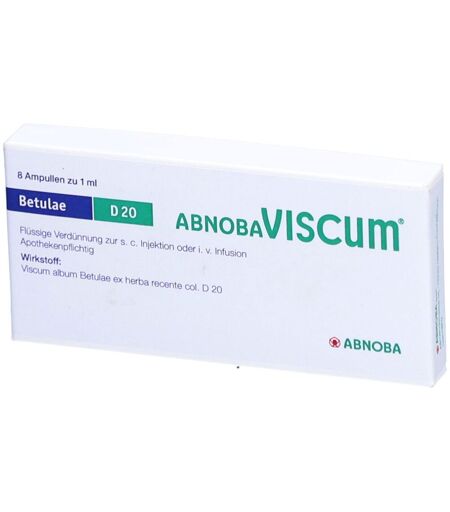 Wirkstoff:Jede Ampulle enthält 1 ml Viscum album Betulae ex herba recente col. D20.Was ist abnoba VISCUM Und Wofür Wird es angewendet?abnobaVISCUM ist ein anthroposophisches Arzneimittel zur erweiterten Behandlung bei Geschwulstkrankheiten.Anwendungsgebiete:Gemäß der anthroposophischen Menschen- und Naturerkenntnis wird abnoba-VISCUM angewendet, um bei Erwachsenen die Form- und Integrationskräfte zur Auflösung und Wiedereingliederung verselbständigter Wachstumsprozesse anzuregen, z.B.bei bösartigen Geschwulstkrankheiten, auch mit begleitenden Störungen der blutbildenden Organebei gutartigen Geschwulstkrankheitenzur Vorbeugung gegen Rückfälle (Rezidivprophylaxe) nach Geschwulstoperationenbei Vorstufen bestimmter Krebserkrankungen (definierte Präkanzerosen). Wie ist abnobaViSCUM anzuwenden?Art der Anwendung:Die subkutane Injektion sollte nach Möglichkeit in Tumor - bzw. Metastasennähe, ansonsten an stets wechselnden Körperstellen (unterschiedliche Stellen im Bauchbereich, ggf. Oberschenkel oder Oberarm) erfolgen.Nicht in entzündete Hautbereiche oder Bestrahlungsfelder injizieren. Es ist auf streng subkutane Injektionstechnik zu achten.Vorsichtshalber wird empfohlen, abnobaVISCUM nicht mit anderen Arzneimitteln in einer Spritze aufzuziehen.Nach Säuberung der Einstichstelle (z.B. durch Abreiben mit 70%igem Alkohol) eine Hautfalte bilden und die Injektionsnadel schräg einstechen. Den Spritzenstempel leicht zurückziehen. Sollte Blut erscheinen, wurde ein Blutgefäß getroffen.Die Injektion in diesem Fall an einer anderen Stelle wiederholen. Wenn kein Blut erscheint, langsam injizieren, anschließend die Nadel herausziehen und auf die Einstichstelle kurz mit einem Tupfer drücken.Es wird in jedem Fall empfohlen, die Injektionstechnik durch eine darin erfahrene Person zu erlernen.Ampullen sind unmittelbar nach dem Öffnen zu injizieren. Angebrochene Ampullen dürfen nicht mehr für eine spätere Injektion verwendet werden.Nur die Potenzstufen D 10, D 20 und D 30:Für die Potenzstufen D 10, D 20 und D 30 kann in besonderen Fällen die erforderliche Dosis einer Infusionslösung zugemischt (physiologische Kochsalzlösung oder 5%-ige Glukoselösung) und langsam intravenös infundiert werden. Die Infusionsdauer sollte für 250 ml mindestens 90 min. dauern.Dosierung und Häufigkeit der AnwendungRichten sich nach der jeweiligen körperlichen Verfassung und werden individuell von Ihrem Arzt festgelegt.Dosierung und Häufigkeit der Anwendung:Einleitungsphase:Soweit nicht anders angegeben, erfolgt die Dosierung stets mit 1 ml der Injektionslösung der angegebenen Stärke bzw. Potenzstufe.Sie sollten die Behandlung mit der Stärke 0,02 mg dreimal wöchentlich beginnen (für die Stärken 0,02 mg, 0,2 mg, 2 mg, 20 mg und Potenzstufe D 6) und dann solange vorsichtig mit den nächst höheren Dosen stufenweise weiterführen, bis Sie die optimale Dosis erreicht haben.Die Dosierung erfolgt grundsätzlich individuell nach Anweisung des Arztes und richtet sich nach Ihrer Reaktionslage.Die... ...