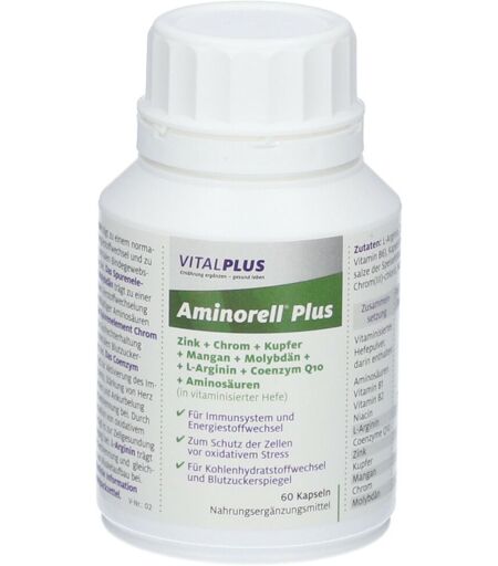 Bitte achten Sie auf eine abwechslungsreiche und ausgewogene Ernährung und gesunde Lebensweise.Kapseln mit den Spurenelementen Chrom, Kupfer, Mangan, Molybdän und ZinkDiätisches Lebensmittel zur besonderen Ernährung im Rahmen eines Diätplanes bei einem festgestellten Mangel an den Spurenelementen Chrom, Kupfer, Mangan, Molybdän und Zink, wie er auftreten kann bei Maldigestion, Malabsorption oder Störungen der Nahrungsaufnahme, chronisch entzündlichen Darmerkrankungen, chronischer Pankreatits, Diabetis mellitus.Zutaten pro Kapsel:61,2 % Hefepulver (mit Aminosäuren), Gelatine, Maisstärke, Palmfett, 2,6 % Zinkoxid, Trennmittel: Mono- und Diglyceride von Speisefettsäuren, 1,3% Mangan(II)-sulfat, 1,1% Kupfer(II)-sulfat, Trägerstoff: Siliciumdioxid, 0,16% Chrom(III)-chlorid, 0,08% NatriummolybdatNährwerte:Nährwertangabenpro Kapselpro 100 gBrennwert3,6 kJ/ 0,9 kcal1517,6 kJ/ 370,1 kcalEiweiß113,9 mg48,5 gKohlenhydrate61,9 mg26,3 gFett15,6 mg6,7 gBroteinheiten0,012,19Zink5 mg2,2 gKupfer1 mg0,43 gMangan1 mg0,43 gMolybdän80 µg34,8 mgChrom75 µg32,6 mg Verzehrempfehlung:Morgens 2 Kapseln nach dem Frühstück unzerkaut schlucken oder individuell nach ärztlicher Empfehlung.Hinweis:Die angegebene empfohlene tägliche Verzehrmenge darf nicht überschritten werden.Lagerung:Außerhalb der Reichweite von kleinen Kindern lagern.Nettofüllmenge:60 Kapseln = 14,1 gHerstellerdaten:Sanorell Pharma GmbH & Co KGHurststraße 3177815 Bühl / Baden ...