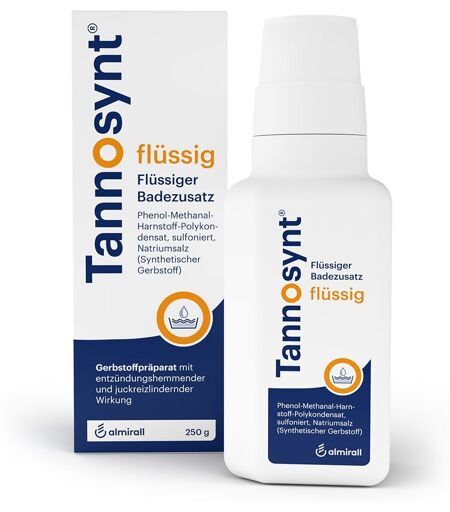 Flüssiges Konzentrat für Umschläge & Bäder Ohne Kortison Bei entzündeter, nässender und juckender Hauterkrankung Sehr gute Hautverträglichkeit Für Kleinkinder und Säuglinge geeignet Anwendbar in Schwangerschaft und Stillzeit Wohltuende Linderung bei Hautentzündungen Die Haut erfüllt viele wichtige Funktionen: Sie schützt uns vor Hitze und Kälte, Krankheitskeimen und schädlichen Umwelteinflüssen, reguliert die Körpertemperatur und lässt uns Berührungen und Schmerzen spüren. Gerät die Haut aus dem Gleichgewicht, kann der Schutz nicht aufrecht erhalten werden. Krankheitserreger können leichter eindringen und die Haut wird anfälliger für Infektionen. Zur Behandlung entzündlicher, juckender und nässender Hauterkrankungen haben sich in der Heilkunde Gerbstoff-Präparate bewährt. Tannosynt® flüssig ist ein Konzentrat mit 40% Gerbstoff und optimal für die Zubereitung wohltuender Bäder und Umschläge eignet. Der enthaltene Arzneistoff Tamol wirkt adstringierend (zusammenziehend), entzündungshemmend und juckreizlin- dernd und gelangt als flüssige Lösung selbst in kleinste, schwer erreichbare Hautfalten. Tannosynt® flüssig ist kortisonfrei und kann aufgrund seiner guten Hautverträglichkeit bereits bei Säuglingen angewendet werden. Entzündungshemmend und juckreizlindernd Tannosynt® flüssig enthält 40% des gut hautverträglichen synthetischen Gerbstoffs Tamol, der aufgrund seiner entzündungshemmenden und juckreizlindernden Eigenschaften bei zahlreichen Hauterkrankungen für eine schnelle Linderung und Abheilung entzündlichnässender Haut sorgen kann. Das flüssige Konzentrat ist frei von Kortison und enthält keine Duft- und Konservierungsstoffe. Das Arzneimittel ist auch zur Anwendung in Schwangerschaft und Stillzeit geeignet. Anwendungsempfehlung Tannosynt® flüssig ist nur zur äußeren Anwendung geeignet und darf nicht unverdünnt angewendet werden! Für Teilbäder oder Umschläge werden 5 Liter Wasser mit 5 ml Tannosynt® flüssig (= 1/3 Messbecher) gemischt, das entspricht einer Verdünnung von 1:1000. Für ein Kinderbad geben Sie 5 ml Tannosynt® in 25 Liter Wasser, bei einem Vollbad für Erwachsene werden 30 ml Tannosynt® (= 2 Messbecher) in 100 Liter Wasser gegeben (Verdünnung 1:5000). Die empfohlene Badedauer beträgt 10 bis 15 Minuten, die Badetemperatur sollte zwischen 32 und 35 °C liegen. Tannosynt® flüssig sollte nicht gleichzeitig mit Seife angewendet werden. WINDELDERMATITIS Bei Babys kommt es im Windelbereich leicht zu entzündlichem Ausschlag mit Rötungen, Pusteln und Bläschen. Begleitend zu einer Behandlung mit Tannosynt® Lotio können Bäder mit Tannosynt® flüssig die Abheilung fördern. NEURODERMITIS Tannosynt® eignet sich zur unterstützenden Therapie bei Neurodermitis. In akuten Phasen können Umschlä- ge mit Tannosynt® flüssig helfen, die Entzündung zu bekämpfen und den Juckreiz zu lindern. AKUTE EKZEME Ein Kontaktekzem wird durch direkten Kontakt mit einer Substanz ausgelöst. Bei nässendem Ausschlag wir- ken Umschläge oder Teilbäder mit Tannosynt® entzün-... ...