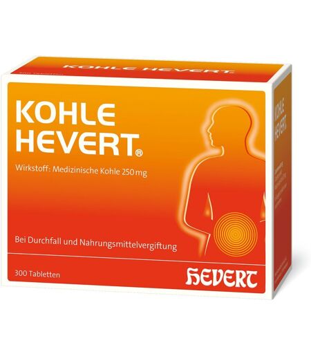 Kohle Hevert – Die sanfte Soforthilfe Qualität Made in Germany Gutes Preis-Leistungsverhältnis Vom nachhaltigen Familienunternehmen aus dem deutschen Mittelstand Kohle Hevert auf einen Blick: Gut verträglich Vegan und glutenfrei In 4 Packungsgrößen erhältlich (20, 50, 100 und 300 Tabletten) Kohle Hevert bei Durchfall und Vergiftungen Aktivkohle adsorbiert schnell und wirkungsvoll eine Vielzahl von Giften. Deshalb ist sie heutzutage ein Mittel der Wahl bei Akut-Vergiftungen und wird häufig dem Erbrechen oder einer Magenspülung vorgezogen. Die Einnahme von Kohle Hevert hilft bei Durchfall Lebensmittelvergiftung Schwermetallvergiftung Medikamentenvergiftung Ursachen von Durchfall Durchfall (Diarrhö) kann viele Ursachen haben. Häufig ist es eine Schutzreaktion des Körpers, der die giftigen Stoffe und Bakterien so schnellstmöglich loswerden möchte. In der Regel spricht man aber erst von Durchfall, wenn der Stuhlgang mehr als dreimal täglich dünnflüssig ist. Dauert der Durchfall länger als zwei Wochen oder wird von Fieber begleitet, sollten Sie unbedingt einen Arzt aufsuchen. Die häufigsten Ursachen von Durchfall sind: Bakterien (z. B. E. coli-Bakterien) Viren (z. B. Norovirus) Lebensmittelvergiftung Nahrungsmittelunverträglichkeiten wie Laktoseintoleranz und Fruktoseintoleranz Nebenwirkungen von Arzneimitteln Stress und psychische Belastungen wie Angst, Aufregung und Lampenfieber Bei Durchfallerkrankungen verliert der Körper große Mengen Wasser und Mineralstoffe (insbesondere Salz). Daher ist es besonders wichtig, viel Wasser zu trinken und Mineralstoffe aufzunehmen. In schweren Fällen sollten Sie ein Elektrolytpulver aus der Apotheke verwenden, da es die Salze, die der Körper benötigt, bereits in der richtigen Mischung enthält. Auf Zucker sollten Sie jedoch verzichten, da es den Darm durch seine wasseranziehende Wirkung zusätzlich reizt. Lebensmittelvergiftung Mit Salmonellen belastete Lebensmittel wie zum Beispiel nicht ausreichend gegarte Speisen (Ei, Fleisch, nicht geschältes Obst, Meeresfrüchte, Leitungswasser) oder verdorbene Lebensmittel können zu einer Lebensmittelvergiftung führen. Halten Sie deshalb beim Einkaufen und Zubereiten von Lebensmitteln die Kühlkette ein, erhitzen Sie Lebensmittel vor dem Verzehr ausreichend, vermeiden Sie Kreuzkontaminationen (d. h. verwenden Sie nicht dasselbe Schneidebrett für Fleisch und Gemüse), reinigen Sie Küchengeschirr wie Messer und Schneidebretter gründlich und halten Sie allgemeine Hygieneregeln ein. Informieren sie sich außerdem vor dem Urlaub, ob das Leitungswasser am jeweiligen Reiseort trinkbar ist. Schwermetallvergiftung Eine Schwermetallvergiftung kann durch die Aufnahme von Schwermetallen wie Blei, Cadmium oder Quecksilber entstehen, da der Körper diese Metalle selbstständig nur sehr langsam wieder ausscheiden kann. Zu den Schwermetallvergiftungen gehören zum Beispiel: Bleivergiftung Kupfervergiftung Quecksilbervergiftung Cadmiumvergiftung Schwermetalle können über die Nahrung (z. B. Pilze oder... ...