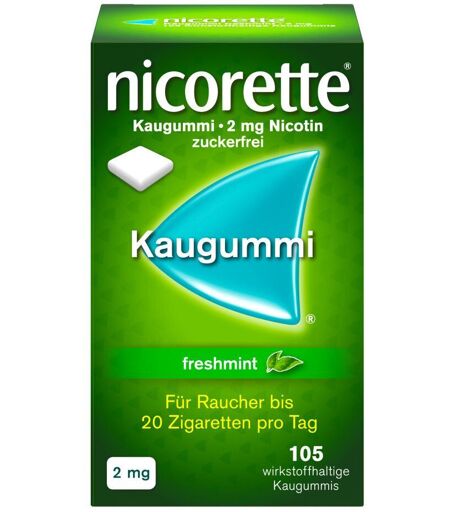 Mit nicorette® endlich aufhören zu rauchen nicorette® Kaugummi freshmint 2 mg – Eigenschaften des Nikotinkaugummis auf einen Blick Mit nicorette® endlich aufhören zu rauchen Mit dem Rauchen aufhören mit nicorette® Kaugummi freshmint 2 mg nicorette® Kaugummi freshmint 2 mg ist ein Nikotinkaugummi zur Raucherentwöhnung. Das aktive Kauen löst den Wirkstoff aus dem Kaugummi, hilft Sie abzulenken und lindert Ihr Rauchverlangen und weitere Entzugserscheinungen, die beim Aufhören mit dem Rauchen auftreten können wie beispielsweise gesteigerter Appetit und erhöhte Reizbarkeit. Das nicorette® Kaugummi 2 mg ist zuckerfrei. nicorette® Kaugummi kann Sie sowohl beim sofortigen Rauchstopp als auch bei der Reduktion der Zigarettenanzahl, um auf diesem Weg schrittweise den Rauchausstieg zu erreichen, unterstützen. Beim Kauf können Sie zwischen vier Packungsgrößen wählen: Doppelpackung: Sie enthält 420 Kaugummis aufgeteilt auf zwei Packungen á 210 Stk. und ersetzt etwa 420 Zigaretten. Vorratspackung: Sie enthält 210 Kaugummis und ersetzt etwa 210 Zigaretten Großpackung: Sie enthält 105 Kaugummis und ersetzt etwa 105 Zigaretten. Einzelpackung: Sie enthält 30 Kaugummis und ersetzt etwa 30 Zigaretten. In den ersten Wochen der Anwendung wird das Kauen von 8-12 Kaugummis pro Tag empfohlen. So geht's: Nikotinersatztherapie mit nicorette® Kaugummi 2 mg Aus dem Kaugummi wird durch aktives Kauen Nikotin gelöst. Über die Mundschleimhaut gelangt das Nikotin dann in die Blutbahn und erhöht den Nikotinspiegel im Blut. So lindert es Ihr Rauchverlangen und weitere Entzugserscheinungen wie beispielsweise gesteigerter Appetit und erhöhte Reizbarkeit. Die Anwendung wird über 12 Wochen empfohlen, wobei Sie Ihrem Körper nach und nach weniger Nikotin zuführen, indem Sie die Anzahl Kaugummis pro Tag reduzieren bis Sie schließlich keine Kaugummis mehr verwenden. Anwendung des nicorette® Kaugummi 2 mg - Kauen ist nicht gleich kauen! Um Sie bei der richtigen Anwendung des Nikotinkaugummis bestmöglich zu unterstützen, hat nicorette® einen Geschmacksindikator NDI (Nicotin-Dosierungs-Indikator) entwickelt. Kauen: Etwa 1 Minute lang kauen bis sich der Geschmack deutlich intensiviert. Nun ist ausreichend Nikotin freigesetzt. Pausieren: Schieben Sie das Kaugummi nun in die Wange bis der Geschmack wieder nachlässt. Kauen: Wiederholen Sie die beiden Schritte Kauen und pausieren bis zu 30 Minuten lang. ...
