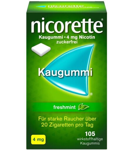 Mit nicorette® endlich aufhören zu rauchen nicorette® Kaugummi freshmint 4 mg – Eigenschaften des Nikotinkaugummis auf einen Blick Mit dem Rauchen aufhören mit nicorette® Kaugummi freshmint 4 mg nicorette® Kaugummi freshmint 4 mg ist ein Nikotinkaugummi zur Raucherentwöhnung. Das aktive Kauen löst den Wirkstoff aus dem Kaugummi, hilft Sie abzulenken und lindert Ihr Rauchverlangen und weitere Entzugserscheinungen, die beim Aufhören mit dem Rauchen auftreten können wie beispielsweise gesteigerter Appetit und erhöhte Reizbarkeit. Das nicorette® Kaugummi 4 mg ist zuckerfrei. Eine Packung enthält 30 Kaugummis und reicht bei einer Verwendung von 10 Kaugummis pro Tag für circa 3 Tage. In den ersten Wochen der Anwendung wird das Kauen von 8-12 Kaugummis pro Tag empfohlen. So geht's: Nikotinersatztherapie mit nicorette® Kaugummi 4 mg Indem Sie nicorette® Kaugummi 4 mg aktiv kauen, setzen Sie das enthaltene Nikotin frei. Über die Mundschleimhaut gelangt das Nikotin in die Blutbahn und erhöht den Nikotinspiegel im Blut. So lindert es Rauchverlangen und weitere Entzugserscheinungen. Verwenden Sie die Kaugummis über eine Dauer von 12 Wochen und führen Sie Ihrem Körper nach und nach weniger Nikotin zu, indem Sie die Anzahl der Kaugummis pro Tag reduzieren bis Sie schließlich keins mehr verwenden und Ihren Körper vollständig entwöhnt haben. Anwendung des nicorette® Kaugummi 4 mg - Kauen ist nicht gleich kauen! Zur Unterstützung bei der richtigen Anwendung des Nikotinkaugummis hat nicorette® einen Geschmacksindikator NDI (Nicotin-Dosierungs-Indikator) entwickelt. Kauen: Für etwa 1 Minute lang kauen bis Sie eine Intensivierung des Geschmacks wahrnehmen. Nun ist ausreichend Nikotin freigesetzt. Pausieren: Schieben Sie das Kaugummi in Ihre Wange bis der Geschmack nachlässt. Kauen: Wiederholen Sie Schritt 1 und 2 für bis zu 30 Minuten, indem Sie immer wieder kauen und pausieren, wenn der Geschmack sich intensiviert bzw. nachlässt. Kauen Sie etwa 1 nicorette® Kaugummi pro Stunde oder immer dann, wenn Sie sonst eine Zigarette geraucht hätten. Pro Tag werden in der Regel 8-12 Kaugummis benötigt. Kauen Sie pro Tag maximal 16 Kaugummis. ...
