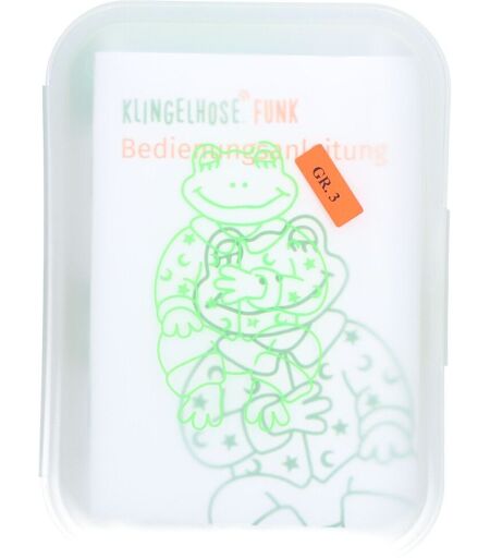 Klingelhose® Funk vollständiges Set mit Funk Inklusive Bedienungsanleitung und exklusivem Nächtebuch, für eine erfolgreiche Behandlungsbetreuung Lieferumfang in der Clickbox: Signalsender 3 Unterhosen mit eingearbeitetem Feuchtigkeitsfühler (Maschinenwaschbar bis 60 º C) Signalempfänger mit Akustik- und Vibrationsalarm Magnetfrosch zum Ausschalten des Signalsenders 1-Cent-Münze zur Befestigung des Schalters im Bad (ohne Abb.) Armbandtasche zum Tragen des Empfängers Bedienungsanleitung Nächtebuch ...