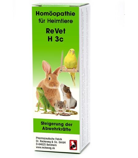 ReVet® H 3c Globuli für Heimtiere Indikation: Zur Steigerung der Abwehrkräfte bei chronischen und chronisch-wiederauftretenden Erkrankungen der Atemwege, wie chronische Kehlkopfentzündung, Entzündung der Bronchien, Rachenentzündung. Hinweis: Bei während der Anwendung des Arzneimittels fortdauernden Krankheitssymptomen ist medizinischer Rat einzuholen. Dosierung: In Abhängigkeit vom Körpergewicht erhalten: Kleinnager (Mäuse, Ratten, Meerschweinchen), Zier- und Singvögel, Terrarientiere, Brieftauben, Frettchen, Kaninchen (die nicht der Gewinnung von Lebensmitteln dienen) ca. 1 bis 3 Globuli, 2- bis 3-mal pro Tag über einige Tage; bei zunehmender Besserung seltener. Die Globuli lösen sich gut in Wasser auf und können auch mit dem Trinkwasser verabreicht werden. Bitte beachten Sie, dass die Häufigkeit der Anwendung von ReVet® H-Präparat zu ReVet® H-Präparat unterschiedlich ist und sich außerdem danach richtet, ob die Erkrankung des Tieres akut oder chronisch ist. Die verabreichte Menge pro Gabe ist dagegen für jede Tierart und -größe und bei allen ReVet® H-Präparaten gleich. Inhaltsstoffe: In 10 g Streukügelchen sind verarbeitet: Antimonium sulfuratum aurantiacum C9, Ipecacuanha C6, Silicea C9, Spongia C6. Sonstiger Bestandteil: Sucrose. ...