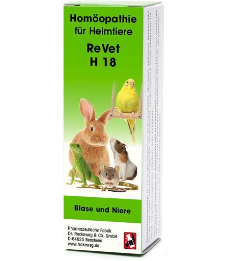 ReVet® H 18 Globuli für Heimtiere Indikation: Blasenentzündung, Blasenentleerungsstörung, Entzündung der harnbildenden und harnableitenden Wege, Nierenentzündung, Nierenbeckenentzündung, Harnleiterentzündung, schmerzhaftes Harndrängen, erschwerter Harnfluss bei Prostatavergrößerung, Harngrieß. Dosierung: In Abhängigkeit vom Körpergewicht erhalten: Kleinnager (Mäuse, Ratten, Meerschweinchen), Zier- und Singvögel, Terrarientiere, Brieftauben, Frettchen, Kaninchen (die nicht der Gewinnung von Lebensmitteln dienen) ca. 1 bis 3 Globuli, 2- bis 3-mal pro Tag über einige Tage; bei zunehmender Besserung seltener. Die Globuli lösen sich gut in Wasser auf und können auch mit dem Trinkwasser verabreicht werden. Bitte beachten Sie, dass die Häufigkeit der Anwendung von ReVet® H-Präparat zu ReVet® H-Präparat unterschiedlich ist und sich außerdem danach richtet, ob die Erkrankung des Tieres akut oder chronisch ist. Die verabreichte Menge pro Gabe ist dagegen für jede Tierart und -größe und bei allen ReVet® H-Präparaten gleich. Inhaltsstoffe: In 10 g Streukügelchen sind verarbeitet: Berberis vulgaris C4, Cantharis C6, Lycopodium C9, Sabal serrulatum C4. Sonstiger Bestandteil: Sucrose. ...