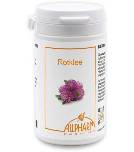 Nahrungsergänzungsmittel sind kein Ersatz für eine ausgewogene und abwechslungsreiche Ernährung und eine gesunde Lebensweise.Rotklee IsoflavoneDie Rotklee Isoflavone Kapseln von Allpharm Premium begleiten Sie entspannt durch die Wechseljahre. Rotklee enthält besonders viele, wertvolle sekundäre Pflanzenstoffe, sogenannte Isoflavone. Diese haben eine schwach östrogene Wirkung, wodurch sie eine Hormontherapie in den Wechseljahren optimal begleitend unterstützen können. Hitzewallungen, Schlafstörungen und Stimmungsschwankungen sind typische Beschwerden zu Beginn der Menopause. Mit den Rotklee Isoflavone Kapseln können diese Symptome schonend gelindert werden, sodass man sich insgesamt wieder wohler fühlt.Zutaten:Rotklee Konzentrat, Gelatine (Kapselhülle), Acorbinsäure, Trennmittel Magnesiumsalze von Speisefettsäuren, Farbstoff .Nährwerte: Nährwerte pro Kapsel Rotklee-Konzentrat 500 mg Isoflavone 40 mg Vitamin C 30 mg Verzehrempfehlung:Täglich 1 Kapsel mit etwas Flüssigkeit einnehmen.Hinweis:Die angegebene empfohlene tägliche Verzehrmenge darf nicht überschritten werden.Aufbewahrung:Kühl (6-25 °C) und lichtgeschützt lagern. Außerhalb der Reichweite von kleinen Kindern aufbewahren.Nettofüllmenge:60 Kapseln = 37,8 gHerstellerdaten: Allpharm Vertriebs-GmbH Langgasse 6364409 Messel ...