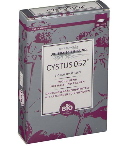 Nahrungsergänzungsmittel sind kein Ersatz für eine ausgewogene, abwechslungsreiche Ernährung und eine gesunde Lebensweise.Wohltuend für Hals und RachenZutaten: Traubenzucker, Bananenpulver, Tee-Extrakt aus Cistus incanus Pandalis getrocknet (Zistrosen-Spezialextrakt Cystus 052®), Rote Rübe-Pulver, Hagebuttenkernöl.Nährwerte: pro Tablette pro 100 g Brennwert 1,8 kcal / 7,7 kJ 379 kcal / 1.612 kJ Eiweiß 12 mg 2,5 g Kohlenhydrate 441 mg 91,9 g Fett 0,9 mg 0,2 g Broteinheiten 0,037 BE 7,7 BE Verzehrempfehlung: 3 x täglich 2 Cystus 052® Bio Halspastillen langsam im Mund zergehen lassen.6 Cystus 052® Bio Halspastillen enthalten durchschnittlich 123 mg Gesamtpolyphenole.Bei akutem Bedarf abends beim Zubettgehen 1-2 Tabletten in die Wangentaschen legen, und dort über Nacht langsam zergehen lassen.Der wertvolle Cystus052®-Extrakt kommt optimal zur Geltung, wenn er lange im Mund-Rachenraum verbleibt.Nach dem Essen, Trinken oder Zähneputzen empfiehlt es sich, Cystus 052® Bio Halspastillen erneut anzuwenden.Hinweis:Die angegebene empfohlene tägliche Verzehrmenge darf nicht überschritten werden.Aufbewahrung: Kühl (6-25 °C) und lichtgeschützt lagern. Außerhalb der Reichweite von kleinen Kindern aufbewahren.Nettofüllmenge:132 HalspastillenHerstellerdaten: Dr. Pandalis Urheimische Medizin GmbH & Co. KG Am Teuto 14 33829 Borgholzhausen ...