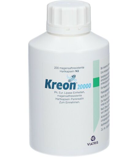 Was sind KREON 20.000 - Kapseln und wofür werden sie angewendet?Was sind KREON 20.000 - Kapseln KREON 20.000 - Kapseln enthalten ein Enzymgemisch, welches „Pankreas-Pulver“ genannt wird. Pankreas-Pulver wird auch Pankreatin genannt. Es unterstützt die Verdauung. Die Enzyme werden aus Schweinebauchspeicheldrüsen gewonnen.KREON 20.000 - Kapseln enthalten kleine magensaftresistente Pellets, die das Pankreas-Pulver langsam im Darm freisetzen (magensaftresistente Pellets, die auch Minimicrospheres genannt werden).Wofür KREON 20.000 - Kapseln angewendet werden KREON 20.000 - Kapseln werden zur Behandlung einer sogenannten exokrinen Pankreasinsuffizienz angewendet. Hierbei produziert die Bauchspeicheldrüse nicht genügend Enzyme, um die Nahrung zu verdauen. Dies wird häufig beobachtet bei Patientenmit Mukoviszidose, einer seltenen angeborenen Störungmit einer chronischen Entzündung der Bauchspeicheldrüse (chronische Pankreatitis)bei denen die Bauchspeicheldrüse teilweise oder vollständig entfernt wurde (partielle oder totale Pankreatektomie)mit BauchspeicheldrüsenkrebsKREON 20.000 - Kapseln können bei Kindern, Jugendlichen und Erwachsenen angewendet werden. Die Dosierungsanleitung für die Altersgruppen wird in Abschnitt 3 dieser Packungsbeilage "Wie sind KREON 20.000 - Kapseln einzunehmen?" erklärt.Die Behandlung mit KREON 20.000 - Kapseln verbessert die Symptome der exokrinen Pankreasinsuffizienz, einschließlich Stuhlkonsistenz (z. B. Fettstuhl), Bauchschmerzen, Flatulenz und Stuhlfrequenz (Durchfall oder Verstopfung), unabhängig von der Grunderkrankung.Sie sollten dieses Arzneimittel nur anwenden, wenn Ihr Arzt bestätigt hat, dass Sie an einer dieser Krankheiten leiden, und Ihr Arzt Ihnen ausdrücklich die Behandlung mit diesem Produkt empfohlen hat. Säuglinge und Kinder dürfen dieses Produkt nur auf Empfehlung eines Arztes verwenden und müssen unter ärztlicher Aufsicht behandelt werden. Wenn Sie sich nach 5 Tagen nicht besser oder gar schlechter fühlen, wenden Sie sich an Ihren Arzt.Wie KREON 20.000 - Kapseln funktionieren Die Enzyme in KREON 20.000 - Kapseln verdauen die Nahrung, während sie durch den Darm geht. Sie sollten KREON 20.000 – Kapseln während oder unmittelbar nach einer Mahlzeit oder einemWie sind KREON 20.000 - Kapseln einzunehmen?Nehmen Sie dieses Arzneimittel immer genau wie in dieser Packungsbeilage beschrieben bzw. genau nach Anweisung Ihres Arztes oder Apothekers ein. Fragen Sie bei Ihrem Arzt oder Apotheker nach, wenn Sie sich nicht sicher sind. Ihre Dosierung wird in „Lipase-Einheiten“ gemessen. Lipase ist eines der Enzyme im PankreasPulver. Verschiedene Stärken von Kreon enthalten verschiedene Mengen Lipase.Folgen Sie immer den Anweisungen Ihres Arztes, wie viele KREON 20.000 - Kapseln Sie einnehmen sollen. Ihr Arzt bestimmt die passende Dosis für Sie.Diese richtet sich nach: der Schwere Ihrer ErkrankungIhrem GewichtIhrer Ernährungdem Fettgehalt in Ihrem Stuhl.Wenn Sie weiterhin einen... ...
