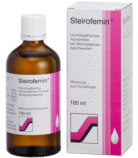 Registriertes homöopathische Arzneimittel, daher ohne Angabe einer therapeutischen Indikation. Steirofemin® Die Übergangsphase von der Geschlechtsreife bis zum Eintritt der Menopause bzw. deren einjährigem Bestehen wird bei der Frau als Klimakterium bezeichnet. Die Menopause ist der durch Nachlassen der Ovarialfunktion bedingte Zeitpunkt der letzten Menstruation – er liegt meist zwischen dem 47. und 52. Lebensjahr. Demzufolge setzt das Klimakterium in der Regel zwischen dem 40. und 50. Lebensjahr ein. Es ist durch Zeichen der Störung des hormonellen Gleichgewichts und die sich daraus ergebende Labilität des autonomen Nervensystems geprägt. Insbesondere treten häufig psychische Störungen wie Stimmungslabilität, Depressionen und Schlafstörungen auf, die sich bis zur Neurose steigern können. Symptome auf physischer Ebene sind Herzklopfen, Tachykardie, Hitzewallungen, Schweißausbrüche, unregelmäßige Menstruation, Pruritus vulvae, Trockenheit der Vagina, Dyspareunie und Osteoporose. Anwendung: Für den Fall der therapeutischen Verordnung: Bei der Homöopathie handelt es sich um eine ausgesprochene Individualtherapie. Die Dosierung erfolgt daher individuell im Rahmen der therapeutischen Behandlung des Patienten. Für den Fall der Selbstmedikation/Eigenbehandlung ohne therapeutische Behandlung: Bei akuten Zuständen alle halbe bis ganze Stunde, höchstens 6 mal täglich, je 5 Tropfen. Bei chronischen Verlaufsformen je 1 bis 3 mal täglich je 5 Tropfen. Mit Flüssigkeit verdünnt (z.B. ein halbes Glas Wasser) am besten vor den Mahlzeiten. Vorsichtsmaßnahmen für die Anwendung: Da keine ausreichend dokumentierten Erfahrungen vorliegen, sollte das Arzneimittel in der Schwangerschaft und Stillzeit nur nach Rücksprache mit dem Arzt angewendet werden. Zusammensetzung: 10,0 g enthalten - Wirkstoffe Cimicifuga Dil. D3 1,88 g Ignatia Dil. D4 1,97 g Sanguinaria Dil. D6 0,99 g Sepia Dil. D8 2,05 g ...