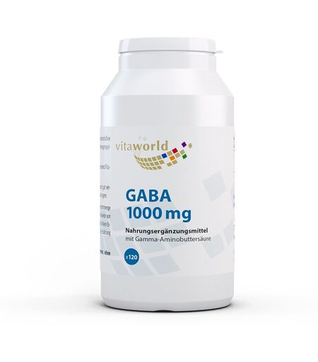 Nahrungsergänzungsmittel sind kein Ersatz für eine ausgewogene und abwechslungsreiche Ernährung und eine gesunde Lebensweise.GABA 1000 mgGamma(y)-Aminobuttersäure, auch GABA genannt, ist der wichtigste hemmende Neurotransmitter des zentralen Nervensystems. Hemmende Neurotransmitter wie GABA setzen im Gegensatz zu erregenden Neurotransmittern wie z. B. Adrenalin die Erregbarkeit der Nervenzellen herab. Diese Hemmung der Übertragung von Signalen an die Nervenenden ist eine wichtige Schleusenwärterfunktion, die der Körper braucht, um zu regenerieren. GABA zählt zu den nicht-essenziellen Aminosäuren und wird im menschlichen Organismus aus Glutaminsäure gewonnen. GABA ist im Thalamus maßgeblich an der Einleitung und Aufrechterhaltung des Schlafs beteiligt.Zutaten:Gamma-Aminobuttersäure (GABA), Mikrokristalline Cellulose, Stearinsäure, Carboxymethylcellulose, Hydroxypropylmethylcellulose, Magnesiumstearat, GlycerinNährwerte: Durchschnittliche Nährwerte: pro Tablette %NRV* Gamma-Aminobuttersäure (GABA) 1000 mg ** Verzeherempfehlung:Täglich 1 Tablette mit ausreichend Flüssigkeit verzehren.Hinweis:Die angegebene empfohlene Tagesmenge darf nicht überschritten werden.Aufbewahrung: Kühl (6-25 °C) und lichtgeschützt lagern. Außerhalb der Reichweite von kleinen Kindern aufbewahren.Nettofüllmenge: 120 TablettenHersteller: Vita-World GmbH Kurt-Schumacher-Str. 49 65232 Taunusstein Deutschland ...