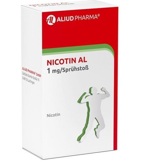 Nicotin AL 1 mg/ Sprühstoß Spray Zur Linderung der Symptome bei einem Nikotin-Entzug Kann dazu beitragen, mit dem Rauchen aufzuhören Kann das Rauchverlangen verringern Sollte zusammen mit einer Beratung und unterstützender Maßnahmen angewandt werden Unterstützung für künftige Nichtraucher Rauchen verursacht an fast allen Organen erhebliche Schäden, vor allem an Lunge und Herz. Bis zu 90 Prozent alle Lungenkrebsfälle werden durch den Konsum von Tabakerzeugnissen ausgelöst. Raucher haben außerdem ein mindestens doppelt so hohes Risiko für Herz-Kreislauf-Erkrankungen und Schlaganfälle wie Nichtraucher. Auch das Risiko für Demenz und verschiedene psychische Erkrankungen ist signifikant höher. Wie wirkt Nikotin? Es bindet sich an die Teerpartikel im Rauch und gelangt mit dem Einatmen in die Lunge. Über die Schleimhäute der Atemwege wird das Nikotin ins Blut weitergeleitet und erreicht so in wenigen Sekunden das Gehirn. Dort beeinflusst es die Tätigkeit bestimmter Nervenzellen. In der Folge werden bestimmte Botenstoffe freigesetzt, die anregend wirken, ein Wohlbefinden auslösen, den Blutdruck erhöhen oder den Puls beschleunigen. Viele Raucher möchten wegen der schwerwiegenden Folge für ihre Gesundheit aufhören, kommen aber alleine nicht von ihrer Sucht los. Denn innerhalbweniger Stunden nach der letzten Zigarette setzen die ersten Entzugssymptome ein. Bei Rauchern, die unter Entzugserscheinungen leiden, steigt die Gefahr eines Rückfalls. Nikotin ersatzpräparate können die Entwöhnung erleichtern, indem sie Nikotin abgeben und die Entzugserscheinungen stark abmildern. Das hilft Rauchern durchzuhalten. Zugeführtes Nikotin in Form von Nikotin ersatzpräparat en wie z.B. über Nicotin AL, kann die Erfolgsquote beim Versuch mit dem Rauchen aufzuhören, erhöhen. Signifikant mehr Rauchern, die ein Nikotin-Spray anwendeten, gelang es mit dem Rauchen aufzuhören als solchen Rauchern, die kein Nikotinersatzmittel anwendeten.** Im Vergleich zu Nikotin-Kaugummis und -Lutschtabletten nimmt der Körper das Nikotin per Spray zudem schneller auf.***-**** In einer Studie zum Rauchverlangen zeigte sich: Die Darreichung als Spray verringerte das Rauchverlangen 1-2 Minuten nach der Anwendung bereits signifikant stärker als eine Nikotin Lutschtablette mit der vierfachen Menge an Nikotin. Eine maximale Reduktion des Rauchverlangens trat nach ca. 10 min auf.***-**** Hilfe beim Rauchstopp Nicotin AL kann zur Behandlung einer Tabakabhängigkeit eingesetzt werden. Das Nikotin-Spray zur Anwendung in der Mundhöhle wirkt als Nikotinrezeptoragonistim peripheren und zentralen Nervensystem. Das pIötzIiche Aufhören eines regelmäßigen Zigarettenkonsums ist oft mit typischen Entzugssyrnptorn en und einem heftigen Rauchverlang en verbunden. Klinische Studien haben jedoch gezeigt: Nikotinersatzpräparat e können Rauchern helfen, das Rauchen auf zu geben, indem sie die Nikotinspiegel im Blut anheben und die Entzugs Symptome lindern.* Nicotin AL enthält weder Teer, Kohlenmonoxid noch andere im... ...