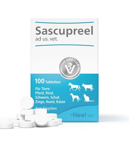 Sascupreel ad us. vet. Natürliche Inhaltsstoffe Gut verträglich Mit anderen Arzneimitteln kombinierbar Keine bekannten Wechsel- oder Nebenwirkungen Hergestellt in Deutschland Zieltierart: Pferd, Rind, Schwein, Schaf, Ziege, Hund und Katze Registriertes homöopathisches Arzneimittel, daher ohne Angabe einer therapeutischen Indikation. Wartezeit: Pferd, Rind, Schwein, Schaf, Ziege: Essbare Gewebe: Null Tage Pferd, Rind, Schaf, Ziege: Milch: Null Stunden Zu Risiken und Nebenwirkungen lesen Sie die Packungsbeilage und fragen Sie die Tierärztin, den Tierarzt oder in Ihrer Apotheke. Biologische Heilmittel Heel GmbH, 76532 Baden-Baden, Dezember 2023 ...
