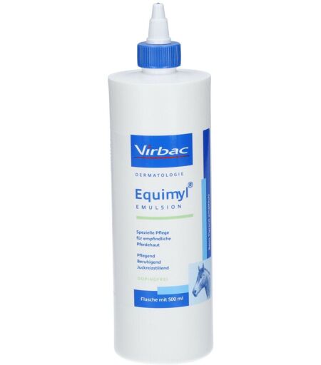 Virbac Equimyl® Equimyl ist eine spezielle Emulsion für die Hautpflege empfindlicher Pferde. Sie eignet sich für Tiere, die zu Juckreiz, Hautallergien oder Sommerekzem neigen. Aufgrund ihrer hautberuhigenden und juckreizstillenden Eigenschaften eignet sich Equimyl auch zur Pflege bei Pferden, die sich – vor allem bei sommerlichem Insektendruck – Schweifrübe und Mähnenkamm scheuern und dabei das Langhaar beschädigen. Anwendung: Equimyl nach Bedarf ein- bis zweimal täglich dünn auftragen und einmassieren. Zusammensetzung: Aqua, Benzyl Benzoate, Petrolatum, Cetearyl Alcohol, Glycerin, Ethyl Panthenol, Piroctone Olamine, Polysorbat 60, Allantoin, Parfum ...