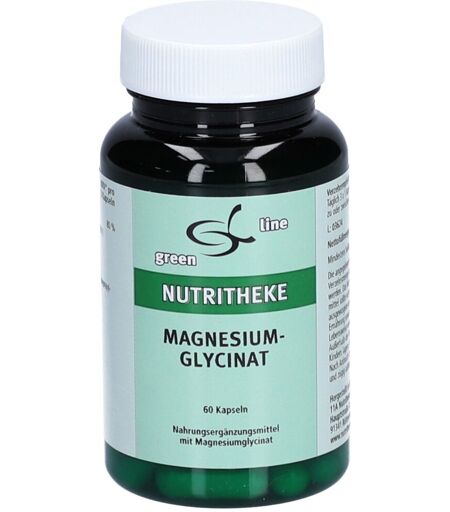 Nahrungsergänzungsmittel sind kein Ersatz für eine abwechslungsreiche und ausgewogene Ernährung und eine gesunde Lebensweise.Magnesiumglycinatgreen line Magnesiumglycinat enthält 826,5 mg Magnesiumglycinat pro Kapsel, was 100 mg Magnesium pro Kapsel entspricht. Das Magnesium ist an die Aminosäure L-Glycin gebunden, die eine entscheidende Rolle im zentralen Nervensystem spielt. Magnesium trägt u.a. zur Verringerung von Müdigkeit, zu einem normalen Energiestoffwechsel, zu einer normalen Funktion des Nervensystems sowie zur Erhaltung normaler Knochen und Muskelfunktion bei. Besonders bei Überanstrengung und stressgeplagten Menschen kann eine Ergänzung sinnvoll sein. Unser Produkt Magnesiumglycinat wird unter Einhaltung der höchsten Standards in Deutschland hergestellt. Für uns ist es selbstverständlich, dass in green line Magnesiumglycinat nur hochreine und geprüfte Rohstoffe (Reinsubstanzen) enthalten sind. Green line aus der 11A Nutritheke bietet Ihnen die größte Auswahl an Mikronährstoffen und Spurenelementen zu absolut fairen Preisen. Mit jedem green line Produkt erhalten Sie Top-Qualität bei gleichzeitigem Verzicht auf chemische Zusatzstoffe und Rieselhilfen. Die grüne Linie der Natur soll Ihren Körper in jeder Lebenslage unterstützen, aufbauen und Energie schenken. Denn green line bietet Ihnen für jede Situation das richtige Produkt und das MADE IN GERMANY.Eigenschaften:lactosefrei, glutenfrei, gelatinefrei, farbstofffrei, vegan, pflanzliche Kapselhülle, ohne Gentechnik, keine RieselhilfenZutaten:Magnesiumbisglycinat, Hydroxypropylmethylcellulose (Kapselhülle)Inhaltsstoffe:Inhalt pro Kapsel: Magnesiumbisglycinat: 826,5 mg enthält Magnesium: 100 mgVerzehrempfehlung:Dreimal täglich 1 Kapsel zur ergänzenden VersorgungHinweis:Die angegebene empfohlene tägliche Verzehrsmenge darf nicht überschritten werden.Aufbewahrung:Außerhalb der Reichweite von Kindern lagern. Kühl und trocken lagern.Nach Anbruch stets fest verschließen und zügig aufbrauchen.Nettofüllmenge:60 StückHersteller: 11A Nutritheke GmbH Hauptstraße 3a91341 Röttenbach ...