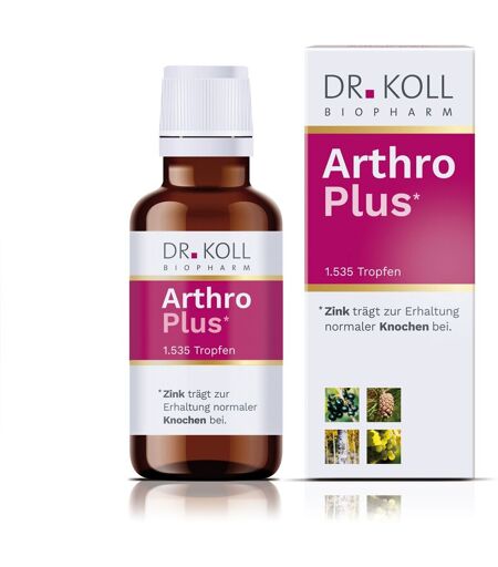 Nahrungsergänzungsmittel sind kein Ersatz für eine ausgewogene und abwechslungsreiche Ernährung und eine gesunde Lebensweise. Produktinformationen Arthro Plus* Dr. Koll *Zink trägt zur Erhaltung normaler Knochen bei Nahrungsergänzungsmittel mit Glycerolkomplettextrakten aus Knospen der schwarze Johannisbeere, der Bergkiefer, der Silberbirke, der Weinrebe, Vitamine und Zink Glutenfrei. Lactosefrei. Ohne Gelatine. Vegan.Zutaten:Wasser, Glycerin, Ethanol, Glycerolkomplettextrakt aus Knospen der schwarzen Johannisbeere, Glycerolkomplettextrakt aus Knospen der Bergkiefer, Glycerolkomplettextrakt aus Knospen der Silberbirke, Glycerolkomplettextrakt aus Knospen der Weinrebe, Natrium-L-Ascorbat, Zinkgluconat Nährwerte: Inhaltsstoffe pro Tagesdosis (60 Tropfen) % NRV* Vitamin C 18 mg 23 Zink 2 mg 20 Glycerolkomplettextrakte aus: Knospen der schwarzen Johannisbeere 70,18 mg ** Knospen des Bergkiefer 49,54 mg ** Knospen der Silberbirke 28,89 mg ** Knospen der Weinrebe 28,89 mg ** *Nährwertbezugswerte gemäß VO (EU) Nr. 1169/2011 pro Tagesdosis** Keine NRV vorhandenVerzehrempfehlung:2 x 30 Tropfen täglich pur oder in Wasser verzehren. Vor Gebrauch schütteln. Hinweis:Die angegebene empfohlene Tagesmenge darf nicht überschritten werden.Aufbewahrung: Kühl (6-25 °C) und lichtgeschützt lagern. Außerhalb der Reichweite von kleinen Kindern aufbewahren. Nettofüllmenge:50 ml Hersteller: Dr. Koll Biopharm GmbHAm Johannisberg 68a-70 D-53474 Bad Neuenahr ...