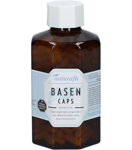 Nahrungsergänzungsmittel sind kein Ersatz für eine abwechslungsreiche und ausgewogene Ernährung und gesunde Lebensweise.BASEN CAPSDu fühlst Dich schlapp, energielos und unwohl? Das sind die ersten Anzeichen für einen gestörten Säure-Basen-Haushalt. Mit Mikronährstoffen kannst Du Deine Power und Kraft zurück gewinnen. naturafit Basen Caps sind eine Kombination basischer Mineralsalze und Spurenelemente. Diese unterstützen Dein Wohlbefinden, wenn Du aufgrund eines gestörten Säure-Basen-Haushaltes an ständiger Müdigkeit, verminderter Leistungsfähigkeit und Widerstandskraft leidest.Der Säure-Basen-Haushalt ist das zentrale Reaktionsmilieu unseres Stoffwechsels. Für unseren Organismus ist es von entscheidender Bedeutung, dass der Säure- bzw. Basen-Gehalt unserer Körperflüssigkeiten konstant gehalten wird: Denn von diesem hängt die Funktion aller wichtigen Stoffwechselvorgänge ab. Wir bezeichnen dies als das Säure-Basen-Gleichgewicht.Ein Ungleichgewicht äußert sich beispielsweise in Müdigkeit, Erschöpfung sowie Muskel- und Bewegungsschmerzen. Das liegt daran, dass überschüssige Säure im Bindegewebe eingelagert werden kann und dieses dann belastet. Doch nicht nur das: Die Einlagerung von Säure zieht auch eine veränderte Einlagerung von Wasser im Gewebe nach sich. Eine Ergänzung der Nahrung mit basischen Mineralsalzen ist dann nötig. Auch beim Abbau von Fett während Diät- und Fastenkuren entsteht vermehrt Säure, die den Stoffwechsel belasten kann. Damit der Gewichtsverlust nicht auch mit einem Verlust der Säure-Basen-Balance einhergeht, ist auch hier die Ergänzung mit naturafit Basen Caps sinnvoll.Zutaten: Calciumcarbonat, Kaliumcitrat, Magnesiumcarbonat, Überzugsmittel Hydroxypropylmethylcellulose (Kapselhülle), Natriumhydrogencarbonat, Maltodextrin, Eisengluconat, Lalmin™Se 2000 (Selenhefe), Füllstoff Calciumcarbonat, Zinkcitrat, Mangansulfat, Chromchlorid, NatriummolybdatNährwerte: Inhalt Inhalt pro Kapsel Inhalt pro 4 Kapseln Calcium 125 mg 500 mg Kalium 66 mg 264 mg Magnesium 37,5 mg 150 mg Natrium 12,5 mg 50 mg Eisen 1 mg 4 mg Zink 1,3 mg 5 mg Mangan 0,5 mg 2 mg Selen 13 µg 52 µg Chrom 13 µg 52 µg Molybdän 19 µg 76 µg Verzehrempfehlung:Täglich 2 x 2 Kapseln zu oder zwischen den MahlzeitenHinweis:Die angegebene empfohlene Tagesmenge darf nicht überschritten werden.Aufbewahrung:Kühl (6-25 °C) und lichtgeschützt lagern. Außerhalb der Reichweite von kleinen Kindern aufbewahren. Nettofüllmenge 320 Kapseln: 273,3gHersteller NATURAFIT GMBH Am Sandfeld 9 – 11 91341 Röttenbach ...