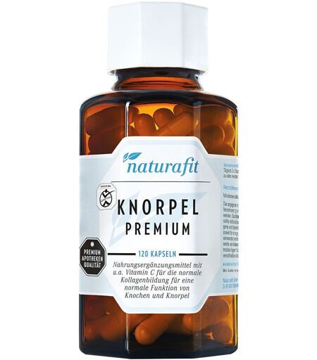 Nahrungsergänzungsmittel sind kein Ersatz für eine ausgewogene und abwechslungsreiche Ernährung und eine gesunde Lebensweise. naturafit Knorpel Premium versorgt Dich optimal mit hochwertigen Mikronährstoffen: unter anderem mit Glucosamin, Chondroitin und Hyaluronsäure. Darüber hinaus enthält es MSM, das unter anderem aus dem Universalbaustein Schwefel besteht. Mangan, Zink und Vitamin D tragen zur Erhaltung normaler Knochen bei Vitamin C trägt zu einer normalen Kollagenbildung für eine normale Funktion der Knochen und eine normale Knorpelfunktion Mangan, Zink, Vitamin C und Selen tragen dazu bei, die Zellen vor oxidativem Stress zu schützen Zutaten: D-Glucosaminsulfat, Chondroitinsulfat, Überzugsmittel Hydroxypropylmethylcellulose (Kapselhülle), MSM (Methylsulfonylmethan), Weihrauch-Extrakt (Boswellia serrata), Vitamin E (D-α-Tocopherylsuccinat), Hyaluronsäure-Natrium, Vitamin C (L-Ascorbinsäure), Zinkcitrat, Selenhefe**, Mangancitrat, Tapioca Dextrin, Natriumcitrat, Vitamin D3 (Cholecalciferol)3 **Lalmin™Se 2000 Nährwerte: Inhalt pro Kapsel pro 4 Kapseln Glucosaminsulfat 250 mg 1000 mg Chondroitinsulfat 100 mg 400 mg Hyaluronsäure 12,5 mg 50 mg MSM 75 mg 300 mg Weihrauch 75 mg 300 mg Vitamin C 12,5 mg 50 mg Mangancitrat 5 mg 50 mg enthält Mangan 0,75 mg 3 mg Selenhefe 6,25 mg 25 mg enthält nat. Selen 12,5 µg 50 µg Zinkcitrat 7,91 mg 31,64 mg enthält Zink 2,5 mg 10 mg Vitamin D3 5 µg = 200 IE 20 µg = 800 IE Vitamin E 20 mg = 29,8 IE 80 mg = 119,2 IE Verzehrempfehlung: Täglich 2x2 Kapseln zu oder zwischen den Mahlzeiten Hinweis: Die angegebene empfohlene Tagesmenge darf nicht überschritten werden. Aufbewahrung: Kühl (6-25 °C) und lichtgeschützt lagern. Außerhalb der Reichweite von kleinen Kindern aufbewahren. Nettofüllmenge: 120 Kapseln = 81,2 g Hersteller: NATURAFIT GMBH Am Sandfeld 9 – 11 91341 Röttenbach ...