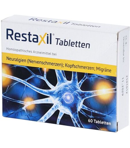 Was ist Restaxil® Tabletten und wofür wird es angewendet? Restaxil® Tabletten ist ein homöopathisches Arzneimittel bei Schmerzen. Die Anwendungsgebiete leiten sich von den homöopathischen Arzneimittelbildern ab. Dazu gehören: Kopfschmerzen; Migräne; Neuralgien (Nervenschmerzen). Wie ist Restaxil® Tabletten einzunehmen? Nehmen Sie dieses Arzneimittel immer genau wie in dieser Packungsbeilage beschrieben bzw. genau nach Anweisung Ihres Arztes oder Apothekers ein. Fragen Sie bei Ihrem Arzt oder Apotheker nach, wenn Sie sich nicht sicher sind. Die empfohlene Dosis für Erwachsene beträgt bei: akuten Zuständen alle halbe bis ganze Stunde, höchstens 6 x täglich, je 1 Tablette Eine über eine Woche hinausgehende Einnahme sollte nur nach Rücksprache mit einem homöopathisch erfahrenen Arzt oder Therapeuten erfolgen. chronischen Verlaufsformen 1 bis 3 x täglich je 1 Tablette Bei Besserung der Beschwerden ist die Häufigkeit der Einnahme zu reduzieren. Die Tabletten werden unabhängig von den Mahlzeiten und mit ausreichend Flüssigkeit eingenommen. Auch homöopathische Medikamente sollten ohne ärztlichen Rat nicht über längere Zeit eingenommen werden. Wenn Sie eine größere Menge von Restaxil® Tabletten eingenommen haben, als Sie sollten, fragen Sie bitte einen homöopathisch erfahrenen Arzt. Grundsätzlich soll die Dosierungs- empfehlung eingehalten werden. Bei Einnahme größerer Mengen des Arzneimittels kann es bei Personen mit Milchzucker- unverträglichkeit zu Magen-Darm-Beschwerden kommen oder eine abführende Wirkung auftreten. Wenn Sie die Einnahme von Restaxil® Tabletten vergessen haben Nehmen Sie nicht die doppelte Menge ein, wenn Sie die vorherige Einnahme vergessen haben. Wenn Sie weitere Fragen zur Einnahme dieses Arzneimittels haben, wenden Sie sich an Ihren Arzt oder Apotheker. Was Restaxil® Tabletten enthält Die Wirkstoffe sind Gelsemium sempervirens Trit. D2, Spigelia anthelmia Trit. D2, Iris versicolor Trit. D2, Cyclamen purpurascens Trit. D3 und Cimicifuga racemosa Trit. D2. Eine Tablette enthält: Gelsemium sempervirens Trit. D2 0,188 mg Spigelia anthelmia Trit. D2 0,751 mg Iris versicolor Trit. D2 0,188 mg Cyclamen purpurascens Trit. D3 0,939 mg Cimicifuga racemosa Trit. D2 0,376 mg Die sonstigen Bestandteile sind Lactose-Monohydrat, Maisstärke und Magnesiumstearat. ...