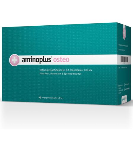 Nahrungsergänzungsmittel sind kein Ersatz für eine abwechslungsreiche und ausgewogene Ernährung und gesunde Lebensweise. Zur diätetischen Behandlung von Knochenabbau bzw. Osteoporose.Diätetisches Lebensmittel für besondere medizinische Zwecke (Bilanzierte Diät) mit Süßungsmittel.Mit aminoplus® osteo von Kyberg Vital steht eine hochwertige ergänzende bilanzierte Diät zur sinnvollen ernährungsmedizinischen Intervention bei Osteoporose zur Verfügung. aminoplus® osteo enthält die erforderlichen Aminosäuren und Vitalstoffe speziell für den Knochenstoffwechsel.lactosefreiglutenfreifructosefreiZutatenCalciumcitrat; L-Lysinhydrochlorid; Säuerungsmittel: Citronensäure; L-Arginin; Aroma; L-Ascorbinsäure; Süßungsmittel: Acesulfam K; Zinlgluconat; Trennmittel: Siliziumdioxid; Mangangluconat; Pyridoxinhydrochlorid; Farbstoff: ß-Carotin; Folsäure; Phyllochinon; Cholecalciferol; Hydroxycobalamin. Nährwerte: Durchschnittliche Nährwerte: TagesportionenPro 100 gEnergie kJ / kcal81 kJ / 19 kcal1.079 kJ / 251 kcalFettdavon gesättigte Fettsäuren0 g0 g0 g0 gKohlenhydratedavon Zucker0,5 g0 g6,2 g0 gEiweiß in gdavonL-ArgininL-Lysin1,7 g0,5 g1,2 g22,7 g6,6 g16 gSalz0 g0 gVitamin C300 mg4.000 mgVitamin B65,6 mg74,7 mgFolsäure200 µg2.666,7 µgVitamin K170 µg933,3 µgVitamin D320 µg (800 IE*)235,3 µgVitamin B1210 µg133,3 µgCalcium800 mg10.666,7 mgZink10 mg133,3 mgMangan1,2 mg16 mg*Internationale EinheitenVerzehrempfehlung:Erwachsene nehmen 1x täglich den Inhalt eines Portionsbeutels, eingerührt in ca. 200 ml stillem Wasser, nach einer Mahlzeit zu sich.Hinweis: Die angegebene Tagesverzehrmenge darf nicht überschritten werden. Aufbewahrung: Kühl (6-25 °C) und lichtgeschützt lagern. Nach dem Öffnen innerhalb von 3 Monaten aufbrauchen. Nettofüllmenge: 30 Tagesportionsbeutel à 8,5 g = 225 gHerstelledaten:Kyberg Vital GmbHKeltenring 882041 Oberhaching ...