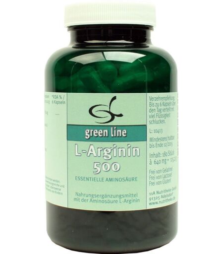 Nahrungsergänzungsmittel sind kein Ersatz für eine ausgewogene und abwechslungsreiche Ernährung und eine gesunde Lebensweise.Essentielle AminosäureArginin ist eine bedingt essentielle Aminosäure. Sie findet sich in allen Eiweißkörpern. Verschiedene einfache Eiweißkörper bestehen sogar vorwiegend aus dieser Aminosäure. Arginin kann die Freisetzung von verschiedenen wichtigen Hormonen (Wachstumshormon, Insulin, Norepinephrin) auslösen.Es kann die Produktion weißer Blutkörperchen anregen. Weiterhin greift es in den Harnstoff-Zyklus ein, um den Körper von überschüssigem Stickstoff (in Form von Harnstoff) zu befreien.Zutaten: L-Arginin, HydroxypropylmethylcelluloseFrei von GelatineFrei von LactoseFrei von FarbstoffenOhne Zusatz von KonservierungsstoffenQualitätsgeprüft Zusammensetzung pro Kapsel L-Arginin 500 mg Verzehrempfehlung:1 Kapsel pro Tag.Hinweis:Die angegebene empfohlene Tagesmenge darf nicht überschritten werden. Aufbewahrung:Kühl (6-25 °C) und lichtgeschützt lagern. Außerhalb der Reichweite von kleinen Kindern aufbewahren.Nettofüllmenge120 Kapseln = 76,8 gHersteller11A nutritheke GmbHHauptstraße 3a91341 Röttenbach ...