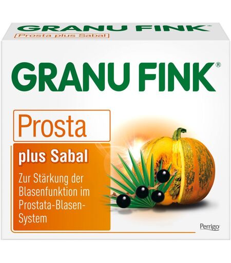 GRANU FINK® Prosta plus Sabal mit der bewährten Wirkstoffkombination von FINK® Arzneikürbis und Sabal.Traditionell angewendet zur Stärkung des Blasen-Prostata-Systems bei häufigem Harndrang, in der Nacht und am Tag.Probleme mit dem Wasserlassen gehören für Millionen Männer zum Alltag. Etwa jeder 2. Mann ab 50 Jahren leidet unter Funktionsstörungen der Prostata, insbesondere der gutartigen Vergrößerung (BPH). Mit Zunahme der Beschwerden werden auch die Einschränkungen im Tagesablauf und die Beeinträchtigung der Lebensqualität größer.Die am häufigsten auftretenden Probleme bei Funktionsstörungen im Blasen-Prostata-Bereich sind:vermehrter Harndrang, insbesondere nachtsverzögerter Beginn beim WasserlassenDruck- und Spannungsgefühl auf der Blaseschwacher und/oder unterbrochener HarnstrahlBrennen und Schmerzen beim WasserlassenNachtröpfeln des HarnsGefühl unvollständiger BlasenentleerungAuch Männer leiden häufig unter den Beschwerden einer Reizblase, die als Folge eines gestörten Zusammenspiels zwischen Nervensystem, Blasenmuskulatur und Harnröhrenverschluss auftritt.Zu den typischen Beschwerden bei einer Reizblase zählen:eine erhöhte Sensibilität auf äußere Reize wie Kälte und Nässe oder Stresssituationengesteigerter, oft zwingender Harndranghäufiges Wasserlassen, unter Umständen im Abstand von 1-2 Stunden.Zur Behandlung von Beschwerden beim Wasserlassen eignen sich aufgrund ihrer hervorragenden Verträglichkeit vor allem Wirkstoffe aus der Natur. Speziell für diese „Männerprobleme“ wurden die pflanzlichen Präparate GRANU FINK® Prosta plus Sabal und GRANU FINK® Prosta forte 500mg entwickelt.Zur Behandlung von Beschwerden mit dem Wasserlassen hat sich insbesondere die Wirkstoffkombination von Arzneikürbis und Sabal sehr gut bewährt.GRANU FINK® Prosta plus Sabal stärkt und entlastet das Blasen-Prostata-System bei:häufigem Harndrang am Tag und in der NachtNachträufeln des Harnsschwachem Harnstrahlunangenehmem RestharngefühlDie wertvollen Inhaltsstoffe dieses pflanzlichen Arzneimittels können ihre stärkende Wirkung auf den gesamten Blasen- und Prostatabereich entfalten. Negative Einflüsse auf die Potenz sind nicht bekannt.Einnahmeempfehlung:3-mal täglich 1 KapselAnwendungsgebiete:Traditionell angewendet zur Stärkung oder Kräftigung der Blasenfunktion. Diese Angabe beruht ausschließlich auf Überlieferung und langjähriger Erfahrung. Beim Auftreten von Krankheitszeichen, insbesondere plötzlicher Harnverhalt oder Blut im Urin, sollte ein Arzt aufgesucht werden. Zu Risiken und Nebenwirkungen lesen Sie die Packungsbeilage und fragen Sie Ihren Arzt oder Apotheker.Inhaltsstoffe:1 Hartkapsel enthält:Kürbissamenpulver 400,0mgKürbissamenöl 340,0mgTrockenextrakt aus Sägepalmenfrüchten (7 – 13 : 1) 75,0 mgAuszugsmittel: Ethanol 90% (m/m)Die sonstigen Bestandteile sind:Hochdisperses Siliciumdioxid, LactoseMonohydrat, Natriumdodecylsulfat, Gelatine, gereinigtes Wasser, Eisen(II,III)oxid (E 172),... ...