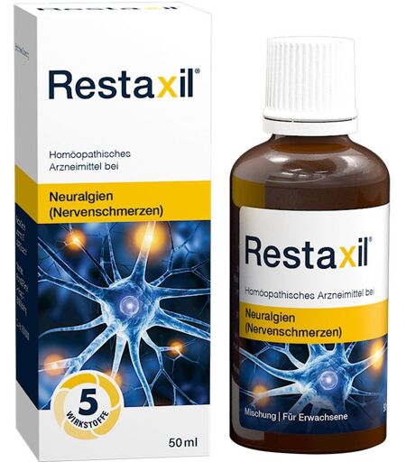 RESTAXIL®: 5-fach-Wirkkomplex gegen Nervenschmerzen RESTAXIL® ist ein zugelassenes Arzneimittel zur Behandlung von Nervenschmerzen (Neuralgien). Diese können an unterschiedlichen Stellen im Körper auftreten. Häufig äußern sie sich zum Beispiel in Form von (chronischen) Rückenschmerzen, muskelkaterähnlichen Schmerzen (Fibromyalgie) oder Missempfindungen in Beinen und Füßen (Diabetische Polyneuropathie). Die Auslöser der Schmerzen sind meist bei allen gleich: geschädigte oder gereizte Nerven. Bisher griffen Betroffene häufig zu herkömmlichen Schmerzmitteln. Das Überraschende: Diese wirken bei Nervenschmerzen selten. Das bestätigen auch Mediziner der Deutschen Gesellschaft für Neurologie. Der Grund ist, dass diese Schmerzmittel hauptsächlich Entzündungen bekämpfen. Die Schmerzursache bei Nervenschmerzen sind aber nicht Entzündungen, sondern Schädigungen der Nervenbahnen. Die gute Nachricht: RESTAXIL (Apotheke, rezeptfrei) wirkt anders, denn es setzt an den geschädigten Nerven an. Das Geheimnis hinter RESTAXIL®? Die zugelassenen Arzneitropfen enthalten eine spezielle Kombination aus fünf Wirkstoffen, die eigentlich dafür bekannt sind, die Nerven zu reizen. Wissenschaftler fanden aber heraus: In einer speziellen Dosierung bewirken diese genau das Gegenteil. Die Wirkstoffe setzen gezielt Reize im Körper. Dadurch erkennt er die Störungen im Organismus und beginnt, die geschädigten Nerven zu regenerieren. Effektive Wirkung bei bester Verträglichkeit Ein weiterer Vorteil von RESTAXIL®: Die Arzneitropfen haben keine bekannten Nebenwirkungen. Auch sind Wechselwirkungen mit anderen Medikamenten nicht bekannt. RESTAXIL® kann deshalb längerfristig und begleitend zu anderen Therapieformen eingesetzt werden. Eine gute Wahl bei allen Schmerzarten, die durch geschädigte Nerven ausgelöst werden! Wie nehme ich RESTAXIL ein? RESTAXIL Tropfen sind sehr gut verträglich und eignen sich deshalb auch für eine längerfristige Einnahme*. Bei chronischen Schmerzen: tägliche Einnahme von 3x je 5-10 Tropfen. In Zeiten von akuten Schmerzen kann die Dosierung auf bis zu 12x täglich je 5-10 Tropfen erhöht werden. Was Restaxil® enthält Die Wirkstoffe sind Gelsemium sempervirens Dil. D2, Spigelia anthelmia Dil. D2, Iris versicolor Dil. D2, Cyclamen purpurascens Dil. D3 und Cimicifuga racemosa Dil. D2. Restaxil® enthält 18 Vol.-% Alkohol Pflichtangaben RESTAXIL®. Wirkstoffe: Gelsemium sempervirens Dil. D2, Spigelia anthelmia Dil. D2, Iris versicolor Dil. D2, Cyclamen purpurascens Dil. D3, Cimicifuga racemosa Dil. D2. Homöopathisches Arzneimittel bei Neuralgien (Nervenschmerzen). Zu Risiken und Nebenwirkungen lesen Sie die Packungsbeilage und fragen Sie Ihren Arzt oder Apotheker. PharmaFGP GmbH, 82166 Gräfelfing ...