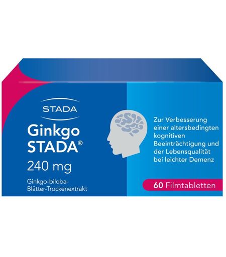 DIE FERNÖSTLICHE HEILPFLANZE FÜR GEDÄCHTNIS UND WAHRNEHMUNG IM ALTER** Vergesslichkeit, Konzentrationsstörungen, Schwindel – diese Symptome häufen sich mit zunehmendem Lebensalter und bei leichter Demenz. Schuld daran ist unter anderem ein Nachlassen der Hirndurchblutung. Mit Ginkgo STADA® können Sie der Hirndurchblutung auf die Sprünge helfen und so Ihre Gedächtnisleistung wieder steigern. Ginkgo STADA® bei altersbedingten Gedächtnis- und Konzentrationsstörungen bei leichter Demenz Mit 240 mg Trockenextrakt aus Ginkgo-biloba-Blättern mit hoher Extraktqualität FÖRDERT die Durchblutung des Gehirns STÄRKT Gedächtnis und Konzentration** IDEAL zur dauerhaften Anwendung SO WIRKT GINKGO STADA® Ginkgo findet schon über Jahrtausende hinweg Verwendung als Heilpflanze in der chinesischen Medizin. Das aus den Ginkgo-biloba-Blättern gewonnene Extrakt in Ginkgo STADA® fördert die Durchblutung des Gehirns und kann so die Gedächtnisleistung wieder steigern und die Konzentration verbessern. ANWENDUNGSEMPFEHLUNG Die Anwendung ist einfach: Erwachsene und ältere Patienten nehmen 2-mal täglich 1 1/2 Ginkgo STADA® Tabletten über mindestens 8 Wochen ein. Die Einnahme sollte morgens und abends erfolgen. INHALTSSTOFFE Was Ginkgo STADA® enthält Der Wirkstoff ist: Ginkgo-biloba-Trockenextrakt. Eine Filmtablette enthält 240 mg quantifiziertes, raffiniertes Trockenextrakt aus Ginkgo-biloba-Blättern (35–67 : 1), Auszugsmittel: Aceton 60 % (m/m). Das Extrakt ist quantifiziert auf 22,0–27,0 % Flavonoide, berechnet als Flavonolglykoside, 2,8–3,4 % Ginkgolide A, B und C, 2,6–3,2 % Bilobalid und enthält höchstens 5 ppm Ginkgolsäuren. Die sonstigen Bestandteile sind Tablettenkern: Croscarmellose-Natrium, hochdisperses Siliciumdioxid, Lactose-Monohydrat, Magnesiumstearat (Ph. Eur.) [pflanzlich], mikrokristalline Cellulose, sprühgetrockneter Glucosesirup. Befilmung: Opadry II White 85 F18422, bestehend aus: Macrogol 3350, Poly(vinylalkohol), Talkum, Titandioxid (E 171), Eisen(III)-hydroxid-oxid x H2O (E 172). Häufige Fragen & Antworten Dürfen Schwangere Ginkgo STADA® einnehmen? Da es einzelne Hinweise darauf gibt, dass ginkgohaltige Präparate die Blutungsbereitschaft erhöhen könnten, darf dieses Arzneimittel während der Schwangerschaft nicht eingenommen werden. Wie lange sollte Ginkgo STADA® eingenommen werden? Die Behandlung sollte mindestens 8 Wochen dauern. Wenn nach 3 Monaten keine Besserung der Symptome eingetreten ist oder sich die Krankheitssymptome verstärken, ist vom Arzt zu überprüfen, ob die Weiterführung der Behandlung noch gerechtfertigt ist. Was mache ich, wenn ich eine Einnahme vergessen habe? Führen Sie die Einnahme wie gewohnt fort. Nehmen Sie nicht die doppelte Menge ein, wenn Sie die vorherige Einnahme vergessen haben. ** Bei altersbedingt nachlassender geistiger Leistungsfähigkeit. Pflichttext: Ginkgo STADA® 240 mg Filmtabletten Zur Anwendung bei Erwachsenen. Wirkstoff: Ginkgo-biloba-Blätter-Trockenextrakt. Ginkgo STADA® ist ein pflanzliches... ...