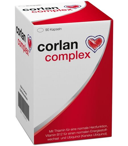 Nahrungsergänzungsmittel sind kein Ersatz für eine ausgewogene und abwechslungsreiche Ernährung und eine gesunde Lebensweise. Corlan ComplexZutaten: Rapsöl, Rindergelatine, Ubiquinol (Kaneka QHTM), Feuchthaltemittel Glycerin, Emulgator Mono- und Diglyceride von Speisefettsäuren, Trennmittel Bienenwachs, Emulgator Soja-Lecithin, Farbstoff Zuckerkulör, Maltodextrin, Thiaminmononitrat, Cyanocobalamin.Nährwerte: Durchschnittliche Nährwerte pro Tagesportion 1 Kapsel pro Tagesportion 2 Kapseln pro Tagesportion 3 Kapseln Thiamin 1,1 mg (100 % NRV*) 2,2 mg (200 % NRV*) 3,3 mg (300 % NRV*) Vitamin B12 2,5 µg (100 % NRV*) 5 µg (200 % NRV*) 7,5 µg (300 % NRV*) Ubiquinol 100 mg 200 mg 300 mg *Prozent der Nährstoffbezugswerte (NRV = Nutrient Reference Values) nach VO (EU) Nr. 1169/2011Verzehrempfehlung: Täglich 1 bis 3 Kapseln mit Flüssigkeit zu den Mahlzeiten verzehren.Hinweis:Die angegebene empfohlene Tagesmenge darf nicht überschritten werden.Aufbewahrung:Kühl (6-25 °C) und lichtgeschützt lagern. Außerhalb der Reichweite von kleinen Kindern aufbewahren.Nettofüllmenge: 90 Kapseln = 66 gHersteller biomo pharma GmbH Josef-Dietzgen-Str. 353773 Hennef ...