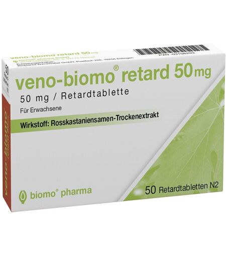 Was ist Veno-biomo Retardtabletten und wofür wird es angewendet? Veno-biomo ist ein pflanzliches Arzneimittel bei Venenerkrankungen. Veno-biomo wird angewendet zur Behandlung von Beschwerden bei Erkrankungen der Beinvenen (chronische Venenschwäche), die gekennzeichnet sind durch geschwollene Beine, Krampfadern, Schwere- und Spannungsgefühl, Schmerzen, Juckreiz, Müdigkeit in den Beinen und Wadenkrämpfe. Wie wird Veno-biomo Retardtabletten angewendet? Nehmen Sie Veno-biomo retard immer genau nach der Anweisung in dieser Packungsbeilage ein. Bitte fragen Sie bei Ihrem Arzt oder Apotheker nach, wenn Sie sich nicht ganz sicher sind. Veno-biomo retard wird unzerkaut mit etwas Flüssigkeit jeweils morgens und abends vor den Mahlzeiten eingenommen. Erste Behandlungserfolge stellen sich möglicherweise erst nach einer Behandlungsdauer von 4 Wochen ein. Eine Langzeitbehandlung ist nach Rücksprache mit dem Arzt möglich. Eine Dosieranpassung bei Patienten mit gestörter Nierenfunktion ist nicht erforderlich. Für eine konkrete Dosierempfehlung bei eingeschränkter Leberfunktion gibt es keine hinreichenden Daten. Die Anwendung bei Kindern und Jugendlichen unter 18 Jahren ist aufgrund des Anwendungsgebietes nicht vorgesehen. Zusammensetzung: Wirkstoff: 178,5 - 263,2 mg Trockenextrakt aus Rosskastaniensamen, entsprechend 50 mg Triterpenglykoside, berechnet als wasserfreies Aescin (photometrisch), Auszugsmittel: Ethanol 50 % (m/m). Sonstige Bestandteile: Calciumhydrogenphosphat; Crospovidon (Typ A); Dimeticon (350); Hochdisperses Siliciumdioxid; Sorbinsäure (Ph. Eur.); Macrogolstearylether-5 (Ph. Eur.); Macragoi 4000; Magnesiumstearat [pflanzlich] (Ph. Eur.); Hypromellose; Ammoniummethacrylat-Copolymer (Typ B) (Ph. Eur.); Ammoniummethacrylat-Copolymer (Typ A) (Ph. Eur.); Natriumhydroxid; Polysorbat 80; Povidon (K 25); Saccharin-Natrium; Talkum; Triethylcitrat; Vanillin; Titandioxid E 171; Eisen(lll)-oxid E 172; Eisenoxide und -hydroxide E 172. Nettofüllmenge: 50 Retardtabletten ...