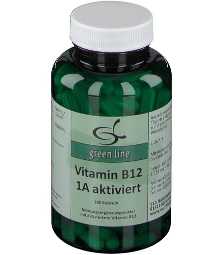 Bitte achten Sie auf eine abwechslungsreiche und ausgewogene Ernährung und gesunde Lebensweise.Zutaten:Hydroxypropylmethylcellulose, Füllstoff mikrokristalline Cellulose, Vitamin B12 aktiviert (Methylcobalamin)Nährwerte:1 Kapsel enthält: Vitamin B12 aktiviert (Methylcobalamin) 500 µgDosierung:1x 1 Kapsel täglich.Hinweis:Die angegebene empfohlene tägliche Verzehrmenge darf nicht überschritten werden.Lagerung:Außerhalb der Reichweite von kleinen Kindern lagern.Nettofüllmenge:180 KapselnHersteller:11A Nutritheke GmbHHauptstraße 3a91341 Röttenbach ...