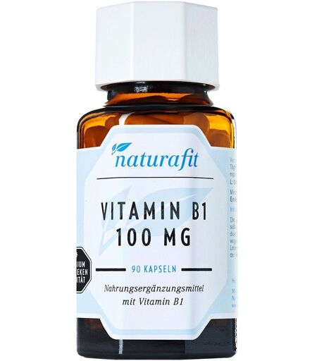 Nahrungsergänzungsmittel sind kein Ersatz für eine ausgewogene und abwechslungsreiche Ernährung und eine gesunde Lebensweise.Vitamin B1, auch Thiamin genannt, ist ein wasserlösliches Vitamin aus dem B-Komplex. Es ist essentiell, um unser Nevensystem in Schwung zu halten und für ausreichend Energie zu sorgen.Da Vitamin B1 vom Körper nur begrenzt gespeichert werden kann, ist eine regelmäßige Zufuhr besonders wichtig. Der Energielieferant Vitamin B1 trägt bei: zu einem normalen Energiestoffwechsel zu einer normalen Funktion des Nervensystems zu einer normalen Herzfunktion zu einer normalen psychischen FunktionKehren Sie zurück zu hoher Leistungsfähigkeit – mit naturafit Vitamin B1.naturafit bietet Ihnen traditionell ausschließlich Reinsubstanzen mit bester Bioverfügbarkeit in Premium Apotheken Qualität. In unserer Manufaktur für Mikronährstoffe werden Nahrungsergänzungsmittel in Handarbeit hergestellt.Durch unser einzigartiges Verfahren können wir produktschonend und ohne Rieselhilfen produzieren. Damit unsere Premium Apotheken Qualität erhalten bleibt, verwenden wir für unsere naturafit Produkte ausschließlich braunes Apothekerglas.Damit leisten wir nicht nur einen Beitrag zur Umwelt, sondern verhindern auch, dass unter anderem Plastikweichmacher in das Produkt gelangen – denn nur Glas bewahrt absolute Reinheit.Zutaten:Thiaminchlorid-HCl (Vitamin B1), Hydroxypropylmethylcellulose, Füllstoff mikrokristalline Cellulose Nährwerte pro Kapsel Vitamin B1 100 mg Verzehrsempfehlung:Täglich 1 Kapsel (= 1 Portion) vorzugsweise mit viel Flüssigkeit zu oder nach einer Mahlzeit einnehmen.Hinweis:Die angegebene empfohlene Tagesmenge darf nicht überschritten werden.Aufbewahrung: Kühl (6-25 °C) und lichtgeschützt lagern. Außerhalb der Reichweite von kleinen Kindern aufbewahren.Nettofüllmenge: 90 Kapseln Herstellerdaten: Naturafit GmbH Am Sandfeld 9-11 91341 Röttenbach ...