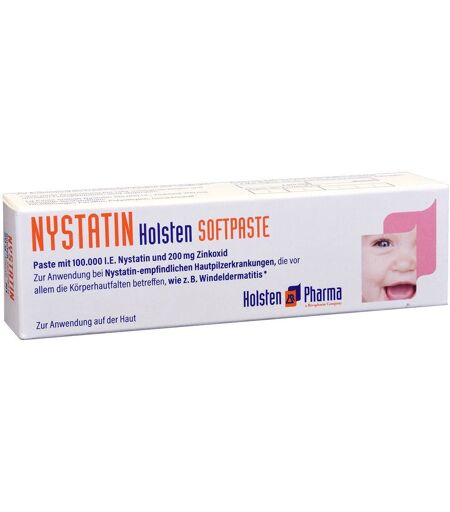Was ist Nyastin Holsten Softpaste und wofür wird es angewendet? Paste zur Anwendung auf der Haut mit 100.000 I.E. Nystatin und 200 mg Zinkoxid. Wie wird Nyastin Holsten Softpaste angewendet? Nystatin Holsten Softpaste sollte 3-4mal täglich auf die erkrankten Hautstellen aufgetragen werden. Die Therapiedauer bei Windeldermatitis oder Candida-Befall von Hautfalten beträgt minimal 1 Woche, durchschnittlich 2-4 Wochen, bei Bedarf auch länger. Die Behandlung sollte noch einige Tage nach der vollständigen Abheilung fortgesetzt werden. Zusammensetzung: Dickflüssiges Paraffin, Polyethylen, Geruchsstoff. ...