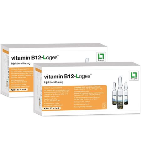 Anwendungsgebiete: Vitamin B12-Mangel, der ernährungsmäßig nicht behoben werden kann. Vitamin-B12-Mangel kann sich in folgenden Krankheitsbildern äußern: hyperchromer makrozytärer Megaloblastenanämie (Perniciosa, Biermer-Anämie, Addison-Anämie), funikulärer Spinalerkrankung. Ein labordiagnostisch gesicherter Vitamin-B12-Mangel kann auftreten bei: jahrelanger Mangel- und Fehlernährung (z. B. durch streng vegetarische Kost). Malabsorption durch ungenügende Produktion von Intrinsic -Factor, Erkrankungen im Endabschnitt des Ileums, z. B. Sprue, Fischbandwurmbefall oder Blind-loop-Syndrom. angeborenen Vitamin-B12-Transportstörungen 1 Ampulle (2 ml) vitamin B12-Loges® Injektionslösung enthält 1000 μg Cyanocobalamin.Dieser Wirkstoff wird vom menschlichen Organismus in das biologisch wirksame Coenzym B12 umgewandelt. Ein ausgewogener Vitamin B-Spiegel hat, wie eine große Bedeutung für die kognitiven Fähigkeiten – vor allem im Alter oder bei Aufnahmestörungen.Ein Vitamin B-Defizit führt demnach insbesondere bei älteren Menschen zur Minderung der geistigen Leistung und kann Gedächtnis und Wahrnehmung beeinträchtigen.vitamin B12-Loges® Injektionslösung ist ein Vitamin-Präparat, das Vitamin B 12 in Form von Cyanocobalamin enthält.Anwendungsgebiete:Es wird angewendet bei Vitamin B12-Mangel, der ernährungsmäßig nicht behoben werden kann.Vitamin B12 -Mangel kann sich in folgenden Krankheitsbildern äußern:Hyperchrome makrozytäre Megaloblastenanämie (Perniciosa, Biermer-Anämie, Addison-Anämie; dies sind Reifungsstörungen der roten Blutkörperchen).Funikuläre Spinalerkrankungen (Rückenmarkschädigung).Ein labordiagnostisch gesicherter Vitamin B 12-Mangel kann auftreten bei:Jahrelanger Mangel- und Fehlernährung (z. B. durch streng vegetarische Kost).Malabsorption (ungenügende Aufnahme von Vitamin B12 im Darm) durch ungenügende Produktion von „Intrinsic factor“ (ein Eiweiß, das in der Magenschleimhaut gebildet und zur Aufnahme von Vitamin B 12 benötigt wird), Erkrankungen im Endabschnitt des Ileums (Teil des Dünndarms), z. B. Sprue, Fischbandwurmbefall oder Blind-loop-Syndrom (Änderung des Darmverlaufs nach Magenoperation).Angeborenen Vitamin B 12-Transport-störungenWie ist vitamin B12-Loges® Injektionslösung anzuwenden?Wenden Sie vitamin B12 -Loges® Injektionslösung immer genau nach der Anweisung in dieser Packungsbeilage an.Bitte fragen Sie bei Ihrem Arzt oder Apotheker nach, wenn Sie sich nicht ganz sicher sind.Zu Beginn der Behandlung wird in den ersten Wochen nach Diagnosestellung 1 ml vitamin B12-Loges®nInjektionslösung zweimal pro Woche verabreicht (1 ml entsprechen 500 μg Cyanocobalamin).Bei nachgewiesener Vitamin B12-Aufnahmestörung im Darm werden anschließend 100 μg Cyanocobalamin einmal im Monat verabreicht.vitamin B12 -Loges® Injektionslösung wird inder Regel intramuskulär verabreicht (in einen Muskel eingespritzt).Es kann aber auch langsam intravenös oder subkutan gegeben (in eine Vene oder unter... ...