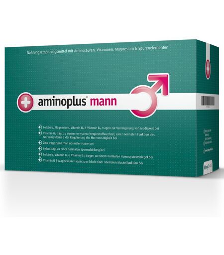 Nahrungsergänzungsmittel sind kein Ersatz für eine ausgewogene, abwechslungsreiche Ernährung und eine gesunde Lebensweise. Mikronährstoffe in aminoplus mann Folsäure, Magnesium, Vitamin B6 und Vitamin B12 tragen zur Verringerung von Müdigkeit bei Vitamin B6 trägt zu einem normalen Energiestoffwechsel, einer normalen Funktion des Nervensystems und der Regulierung der Hormontätigkeit bei Zink trägt zum Erhalt normaler Haare bei Selen trägt zu einer normalen Spermabildung bei Folsäure, Vitamin B6 und Vitamin B12 tragen zu einem normalen Homocysteinspiegel bei Vitamin D und Magnesium tragen zum Erhalt einer normalen Muskelfunktion bei Zutaten:L-Arginin; Aroma; Säuerungsmittel Citronensäure; Tri-Magnesiumdicitrat; L-Citrullin; L-Glutamin; L-Cystein; Calciumascorbat; L-Alanin; Glycin; Süßungsmittel Acesulfam K; Zinkgluconat; Maltodextrin; Süßungsmittel Sucralose; Farbstoff: Rote Bete Saftpulver; Pyridoxinhydrochlorid; Farbstoff: beta Carotin; Chrom-(III)-Chlorid; Folsäure; Natriumselenat; Cholecalciferol; Hydroxocobalamin. Nährwerte:Zusammensetzung: pro Tagesempfehlung (1 Sachet) Tagesportion 1 Beutel %NRV Magnesium 200 mg 53 Vitamin B6 2,5 mg 179 Vitamin B12 5 µg 200 Folsäure 200 µg 100 Vitamin D 10 µg(400 IE**) 200 Vitamin C 200 mg 250 Chrom 50 µg 125 Zink 10 mg 100 Selen 55 µg 100 L-Arginin 2000 mg *** L-Citrullin 1000 mg *** L-Cystein 500 mg *** Glycin 300 mg *** L-Glutamin 700 mg *** L-Alanin 300 mg *** * Referenzwerte für die tägliche Nährstoffzufuhr** Internationale Einheiten*** keine Empfehlungen gegeben Verzehrempfehlung:1 x täglich den Inhalt eines Portionsbeutel in ca. 250 ml stillen Wasser nach einer Mahlzeit auflösen und trinken. Hinweis:Die angegebene empfohlene tägliche Verzehrmenge darf nicht überschritten werden. Lagerung:Außerhalb der Reichweite von kleinen Kindern lagern. Nettofüllmenge:30 Tagesportionsbeutel á 10,5 g = 315 g Hersteller:Kyberg Vital GmbHKeltenring 882041 Oberhaching ...