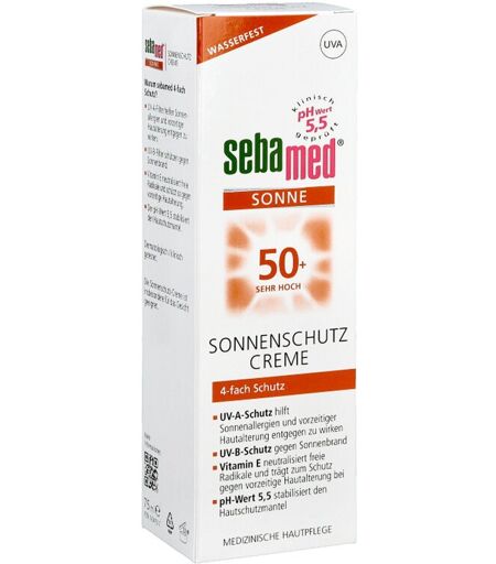 Anwendungsgebiet von Sebamed Sonnenschutz Creme Lsf 50+Sebamed Sonnenschutz Creme Lsf 50+ bietet mit seiner Formulierung ein sicheres und modernes System. Dieses geht auf die individuellen Bedürfnisse sonnenbestrahlter Haut ein.