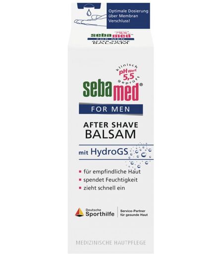 Anwendungsgebiet von Sebamed for men After Shave BalsamSebamed for men After Shave Balsam wurde speziell für die durch das Rasieren strapazierte, empfindliche Haut entwickelt. Der Balsam mit natürlichen Wirkstoffen eignet sich für alle Hauttypen und mit dem Feuchtigkeitskomplex HydroGS wird die Haut widerstandsfähiger gegen äußere Stresseinflüsse. Wirkungsweise von Sebamed for men After Shave BalsamSebamed for men After Shave Balsam beruhigt gereizte Haut und lindert Juckreiz nach der Rasur. Der Balsam sorgt für Frische und Vitalität. Der Wirkstoff der Kamille (Bisabolol) verstärkt den reizlindernden Effekt. Wirkstoffe / Inhaltsstoffe / ZutatenInhaltsstoffe von Sebamed for men After Shave Balsam.